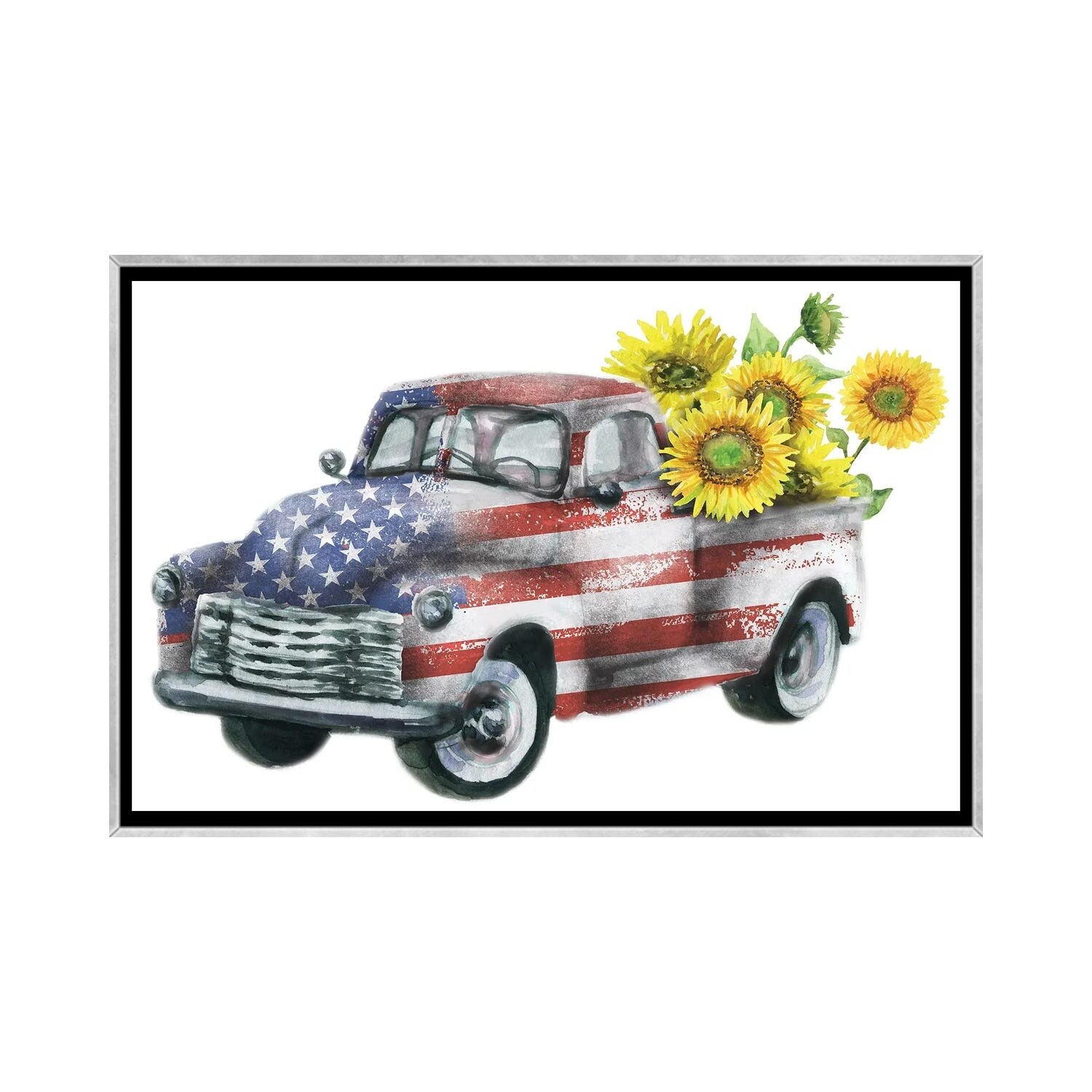 iCanvas "4Th Of July Truck With Sunflowers" by Ephrazy Graphics Framed