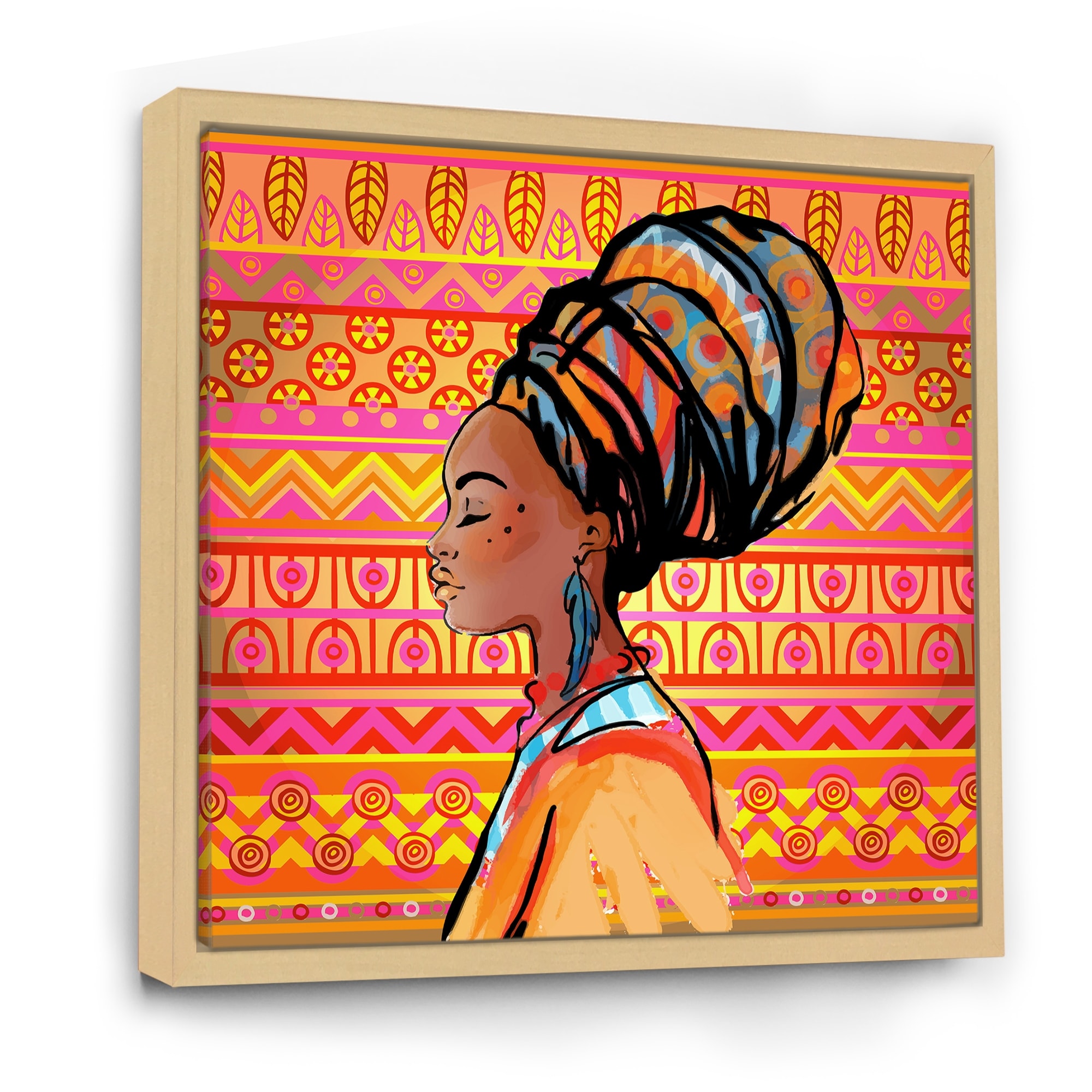 Designart "African American Woman with Turban V" Modern Framed Canvas Wall Art Print