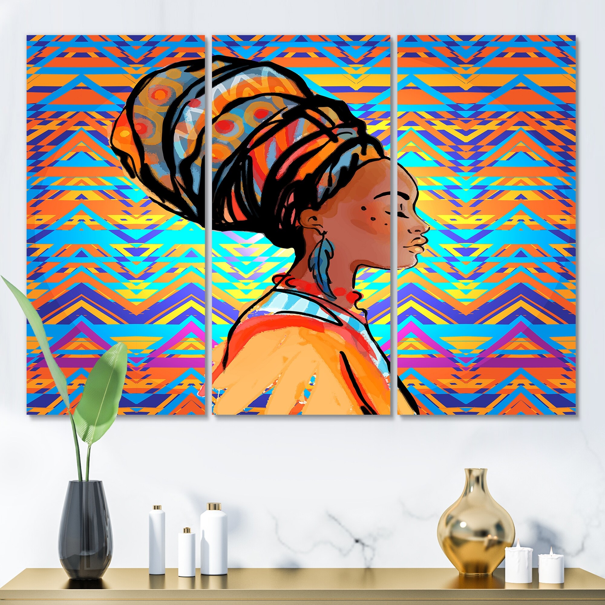 Designart "African American Woman with Turban I" Modern Canvas Wall Art Print