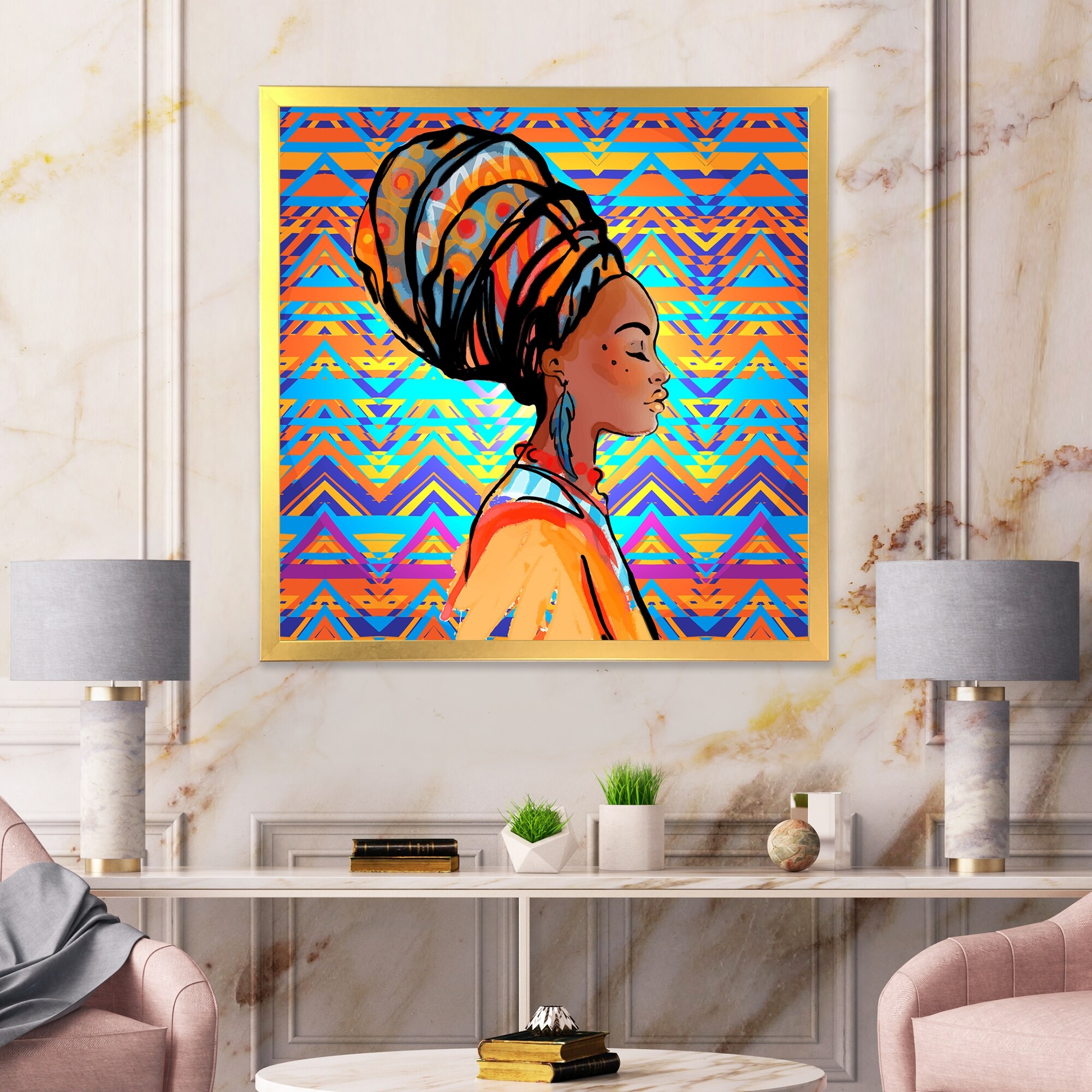 Designart "African American Woman in Turban" Glam Framed Canvas Wall Art Print