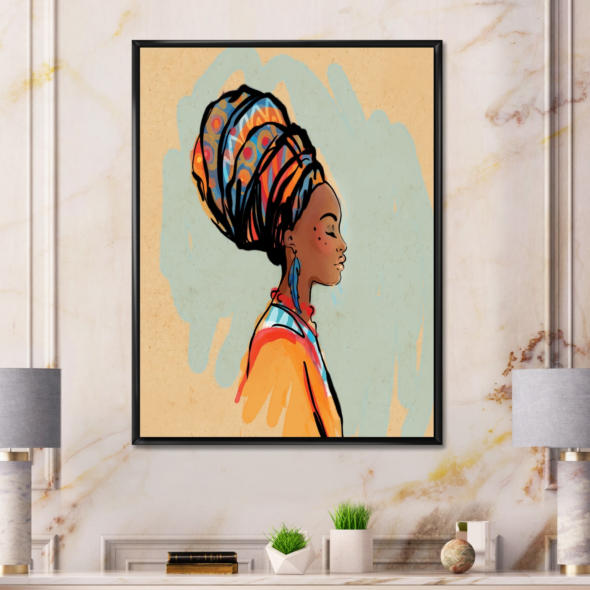 Designart "African American Woman with Turban I" Modern Framed Canvas Wall Art Print