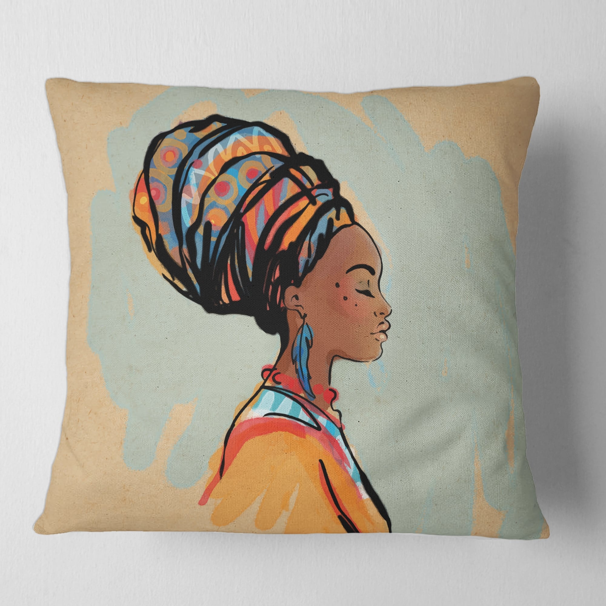 Designart 'Portrait of African American Woman With Turban III' Modern Printed Throw Pillow