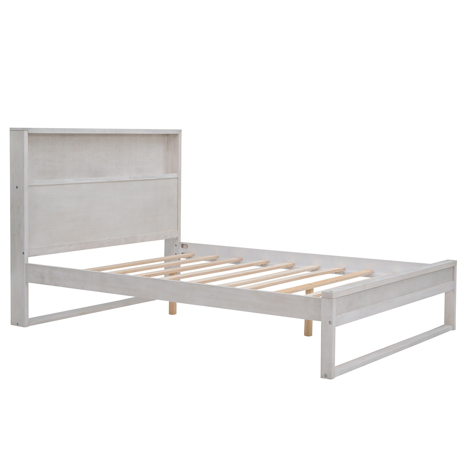 Full Size Platform Bed with Storage Headboard,Sockets and USB Ports
