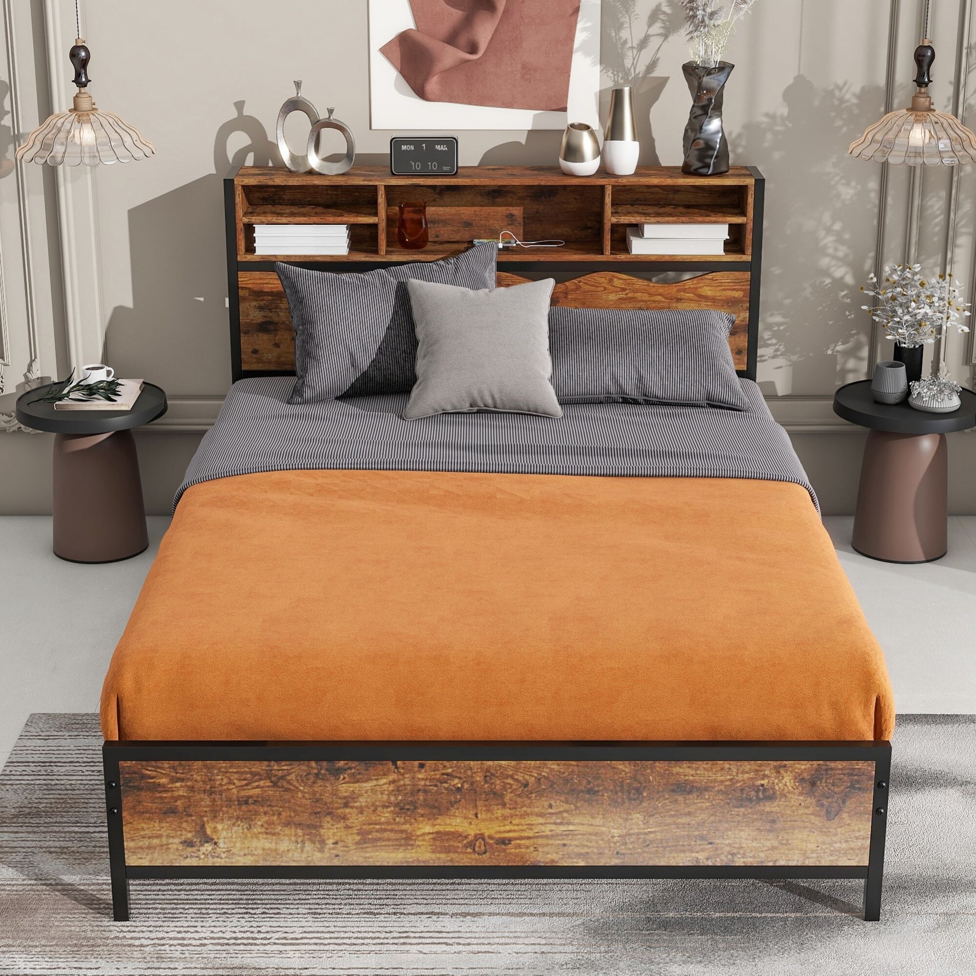 Platform Bed with Storage Headboard,Sockets and USB Ports