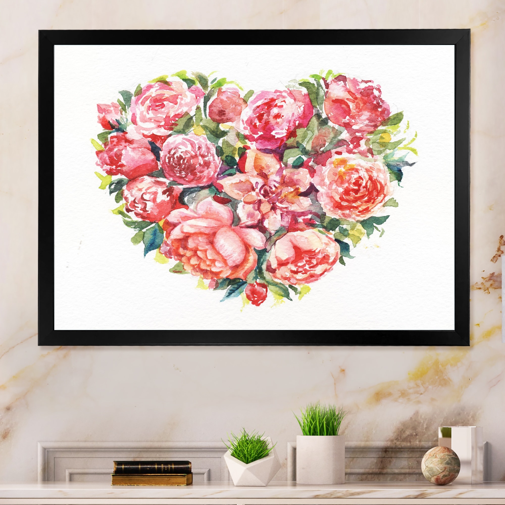 Designart "Bouquet Of Roses At Valentines" Modern Framed Wall Decor