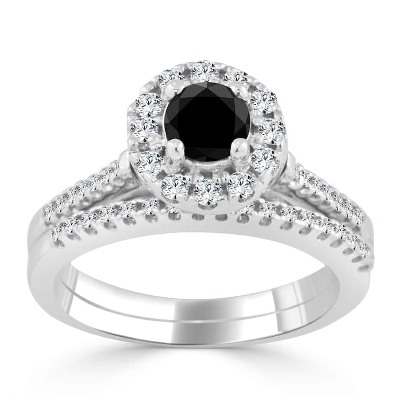 Auriya 3/4ctw Halo Black Diamond Engagement Ring and Wedding Band Set 14k Gold