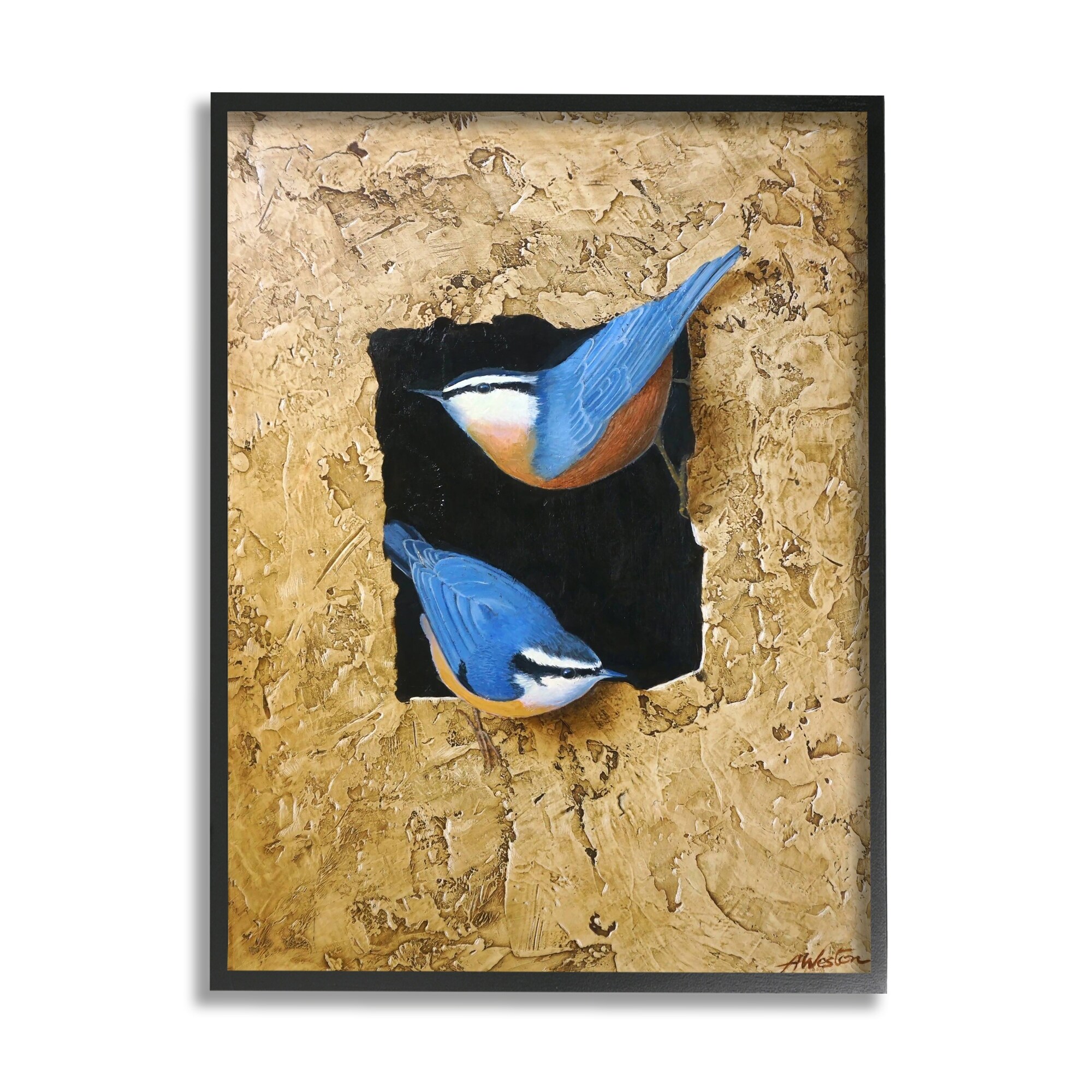 Stupell Industries Blue Bird Pair Perched Rough Layered Structure Framed Wall Art, Design by Alan Weston - Tan