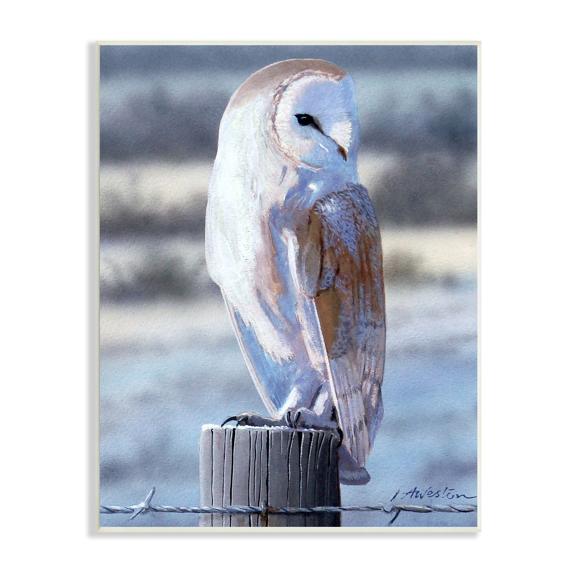 Stupell Serene Barn Owl Perched Snow Dusted Fence Wood Wall Art, Design by Alan Weston - Blue