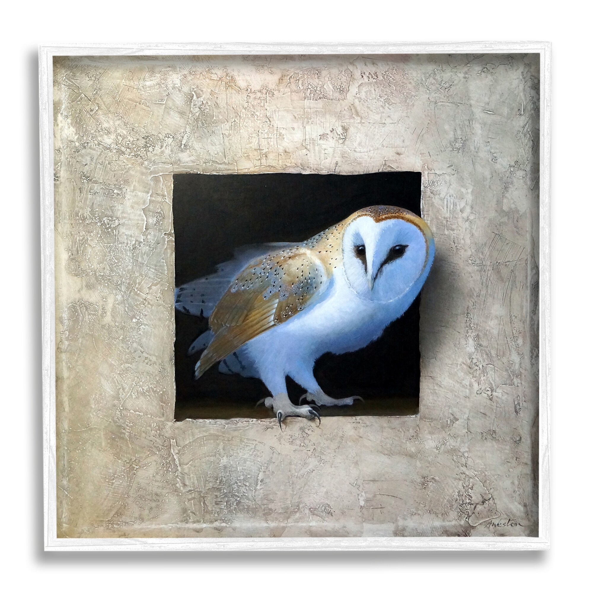 Stupell Mysterious Barn Owl Peering From Darkness Painting Framed Wall Art, Design by Alan Weston - Beige