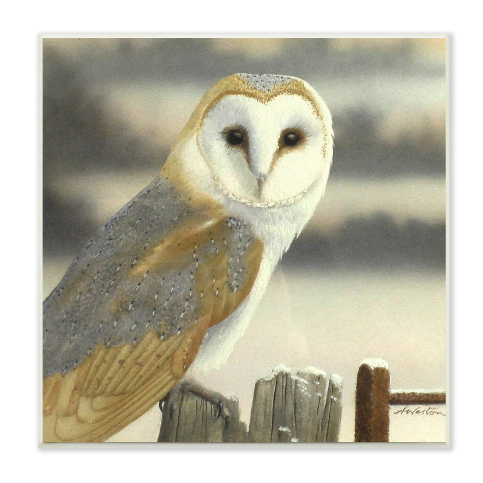 Stupell Barn Owl Gazing Perched Niveous Rural Fence Wood Wall Art, Design by Alan Weston - Tan