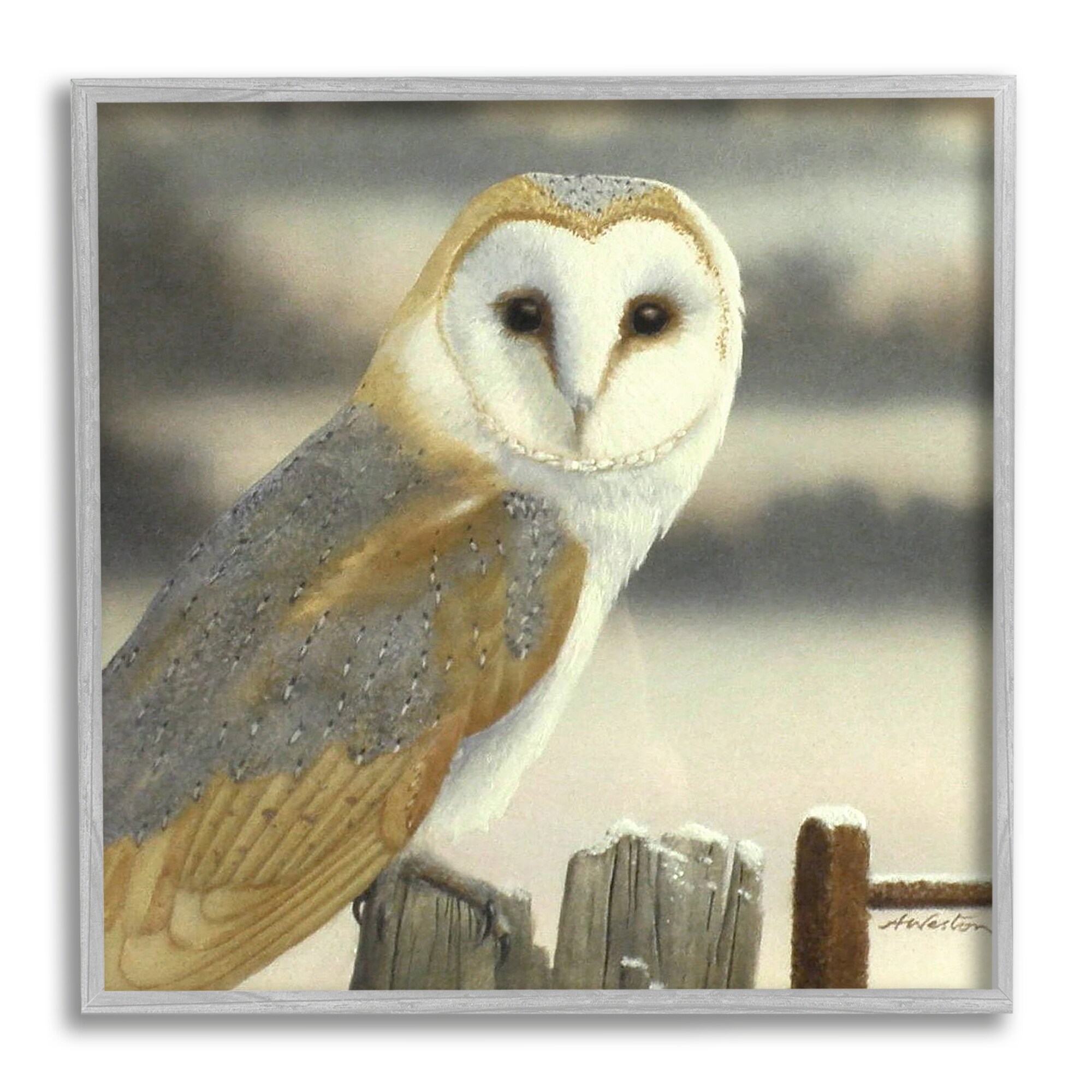 Stupell Industries Barn Owl Gazing Perched Niveous Rural Fence Framed Wall Art, Design by Alan Weston - Tan