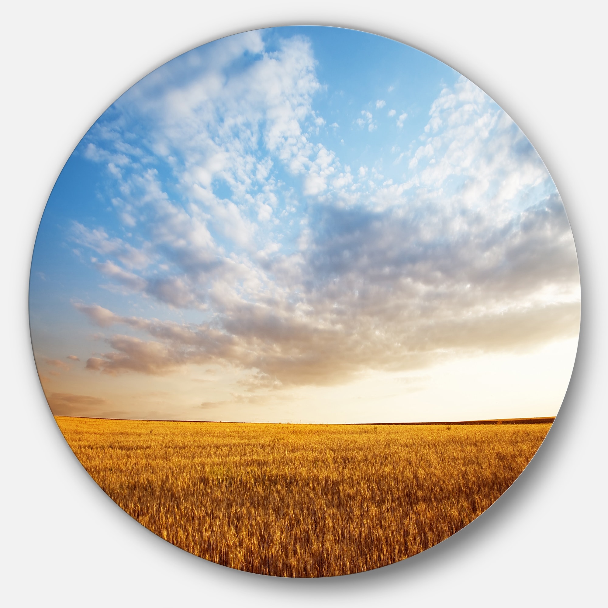 Designart 'Wheat Field under Summer Sky' Circle Wall Art Landscape