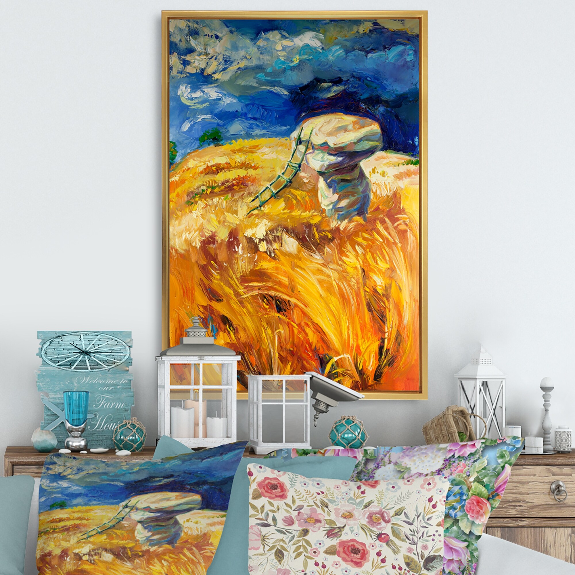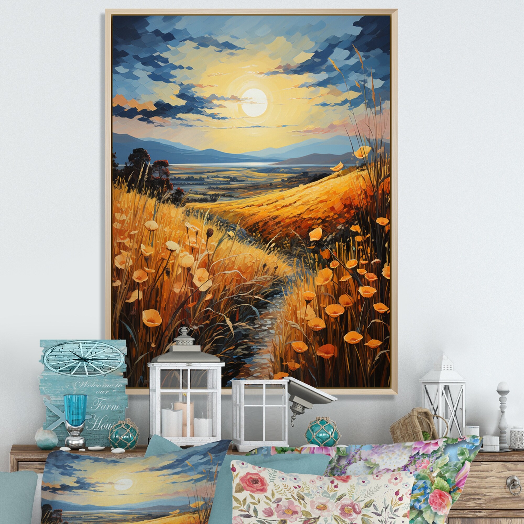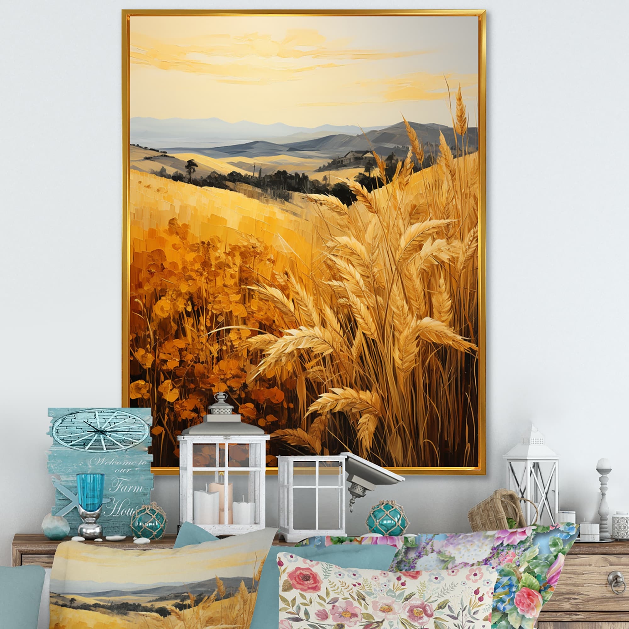 Designart "Countryside Wheat And Pastel III" Countryside Framed Wall Decor