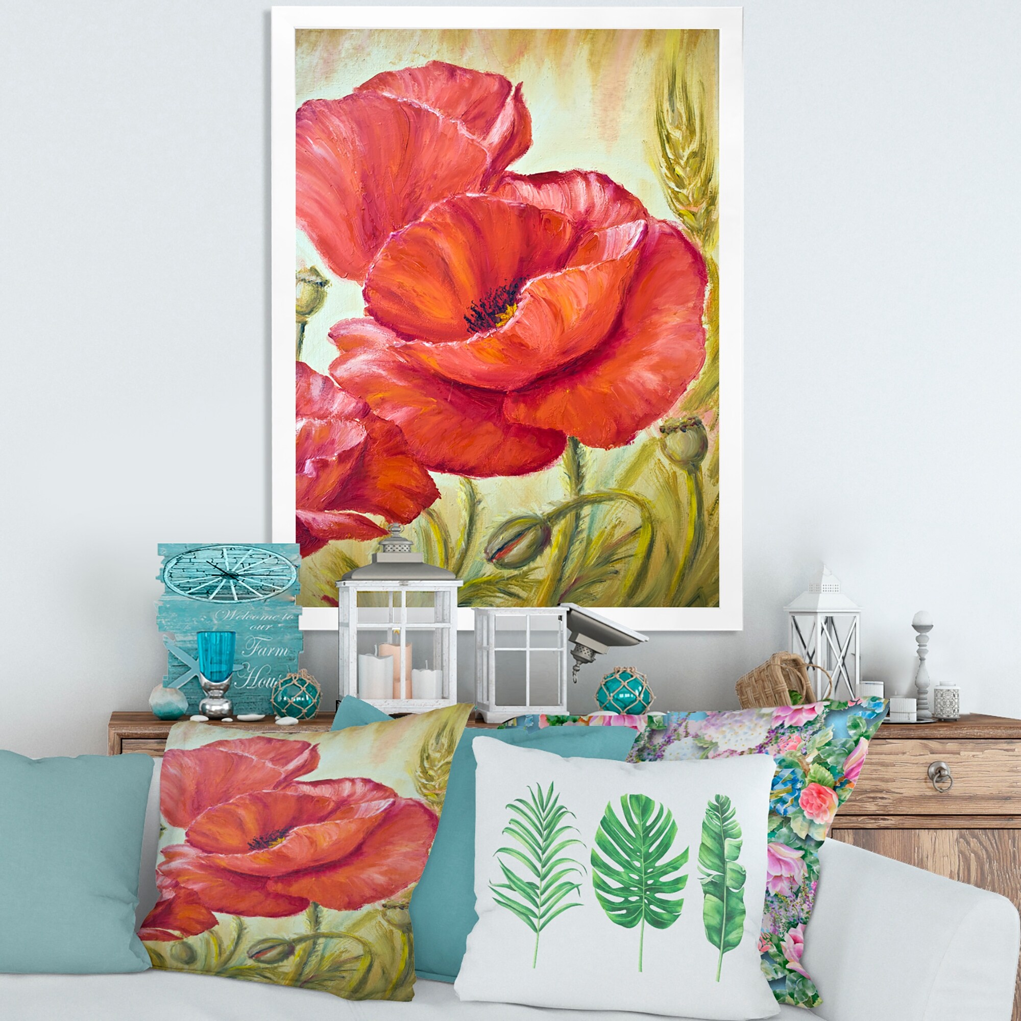 Designart "Blossoming Poppies in Wheat Fields I" Traditional Framed Art Print