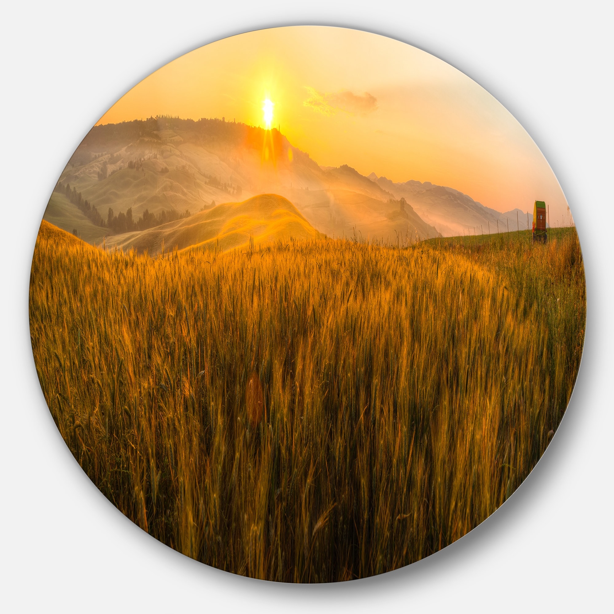 Designart 'Tuscany Wheat Field at Sunrise' Landscape Round Wall Art
