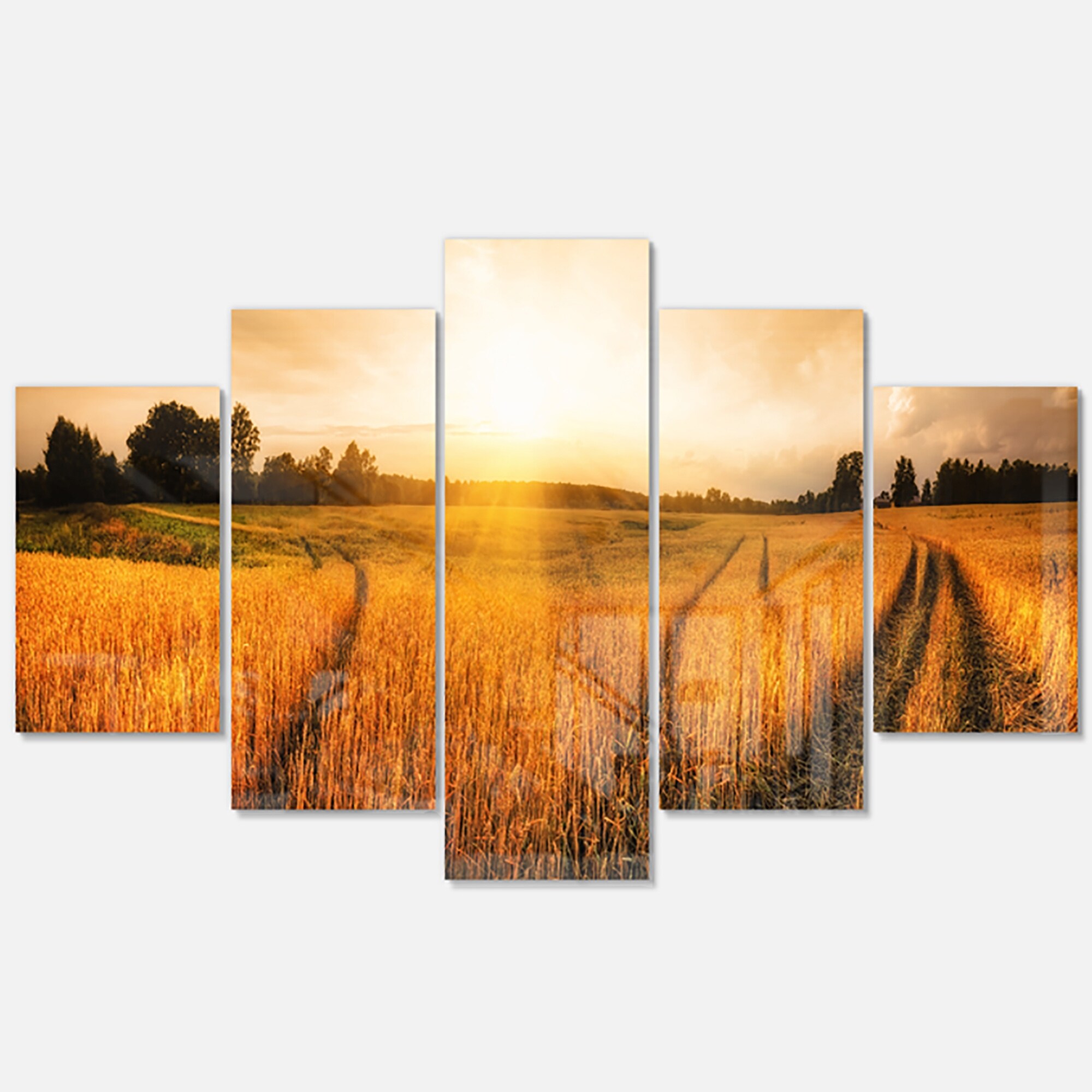 Designart 'Wheat Field at Sunset Panorama' Photo Metal Wall Art