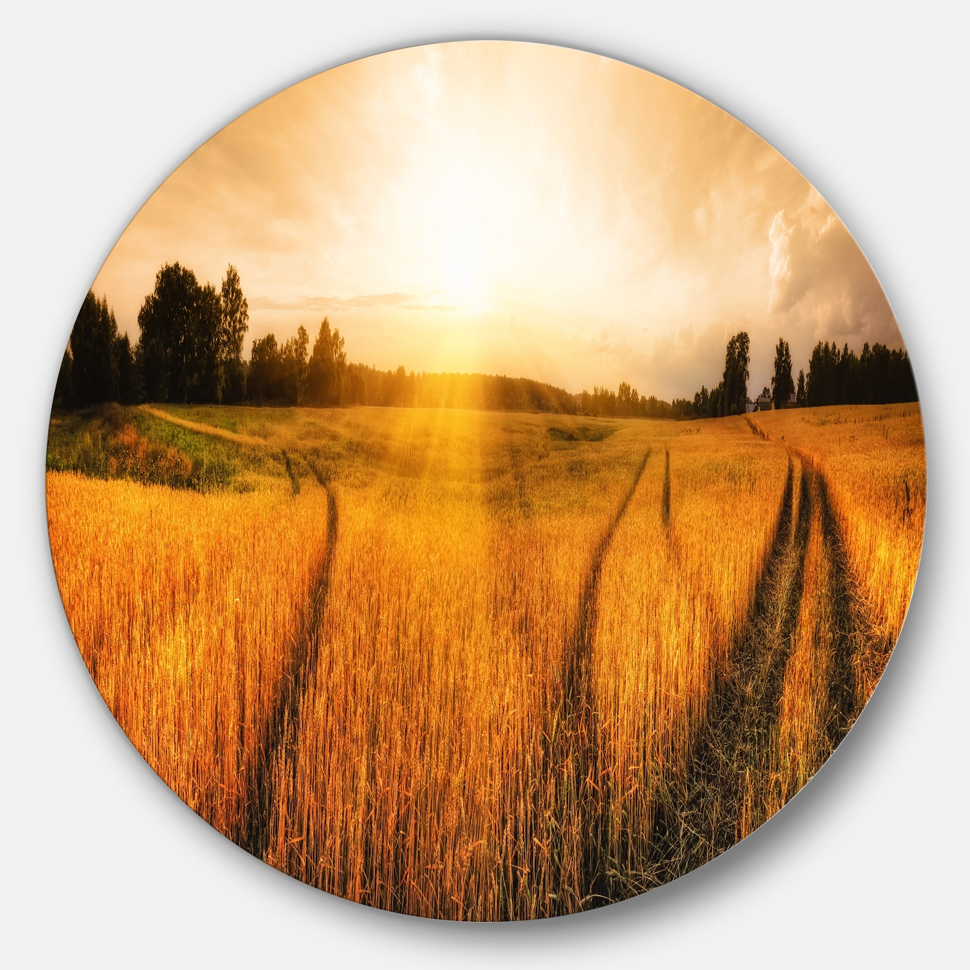 Designart 'Wheat Field at Sunset Panorama' Photo Large Disc Metal Wall art