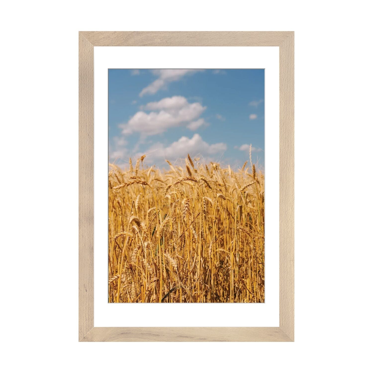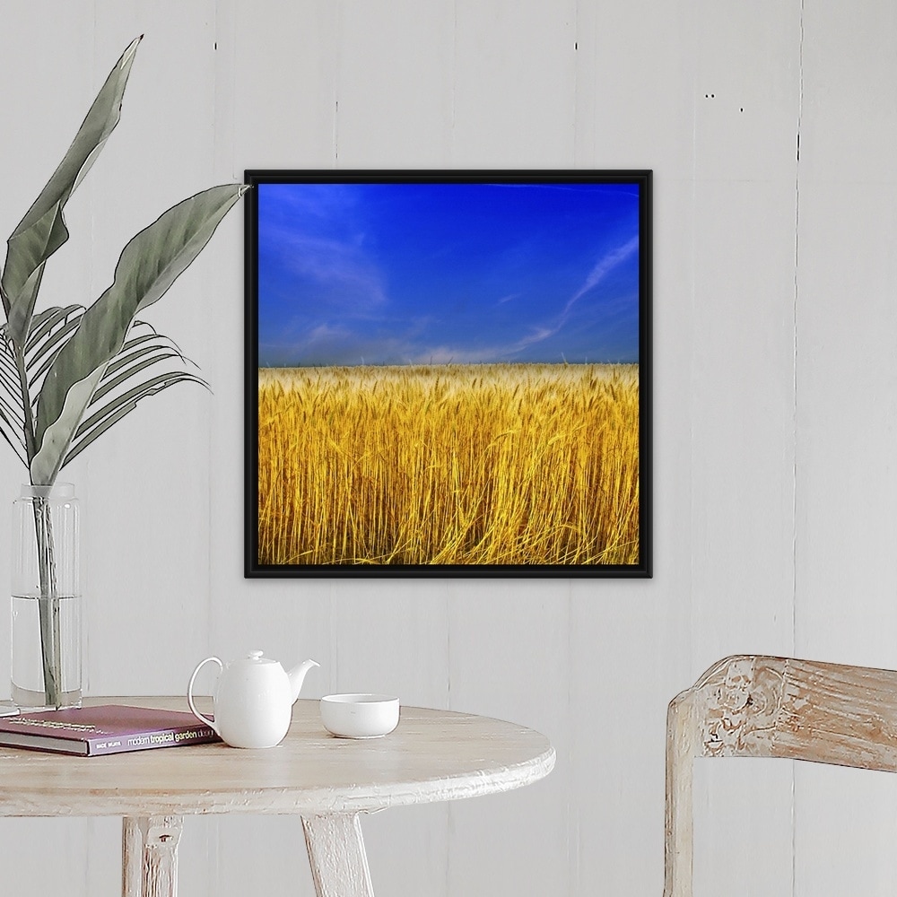 "Golden Wheat field against blue sky" Black Float Frame Canvas Art