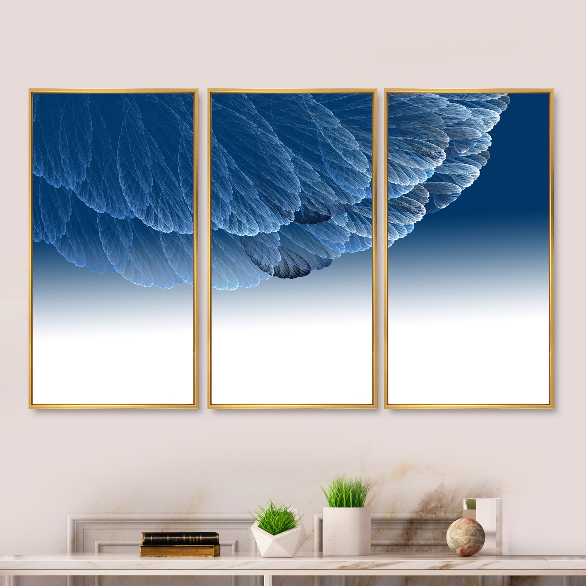 Designart "Blue Ink Infinity Ink Cloud on White" Modern Framed Wall Art Set of 3 - 4 Colors of Frames