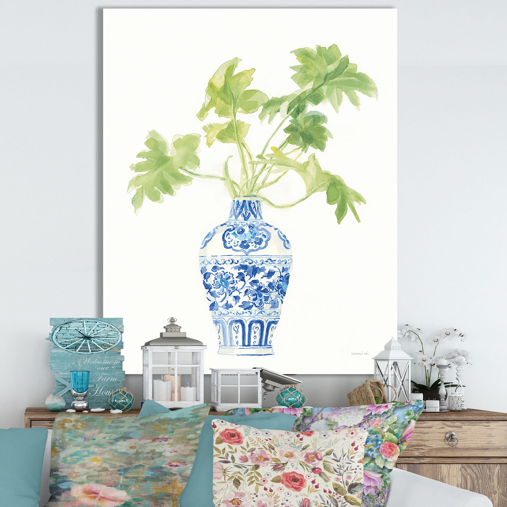 Designart "Palm Chinoiserie White III" Cottage Canvas Wall Art