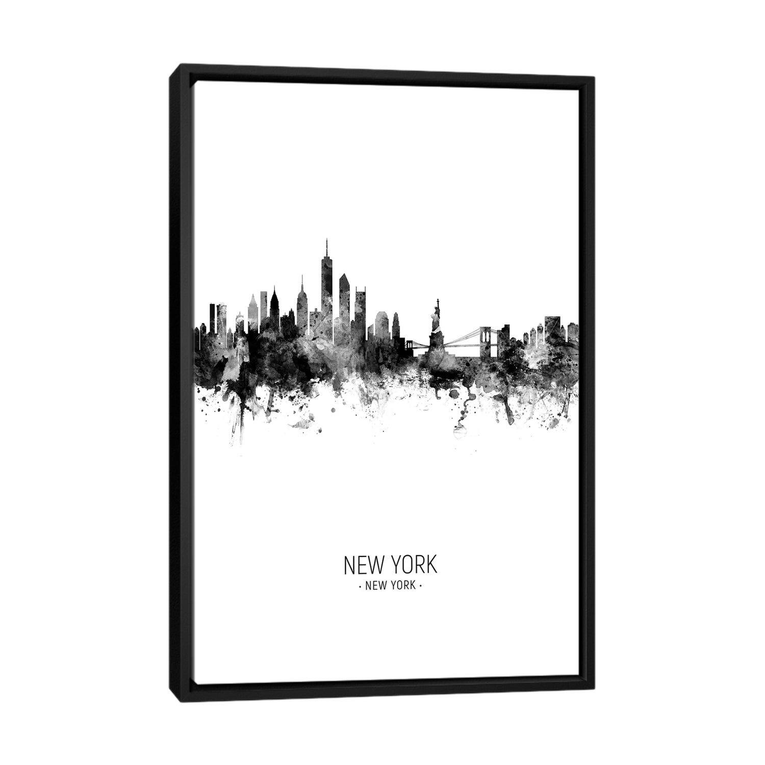 iCanvas "New York Skyline Portrait Black And White" by Michael Tompsett Framed Canvas Print