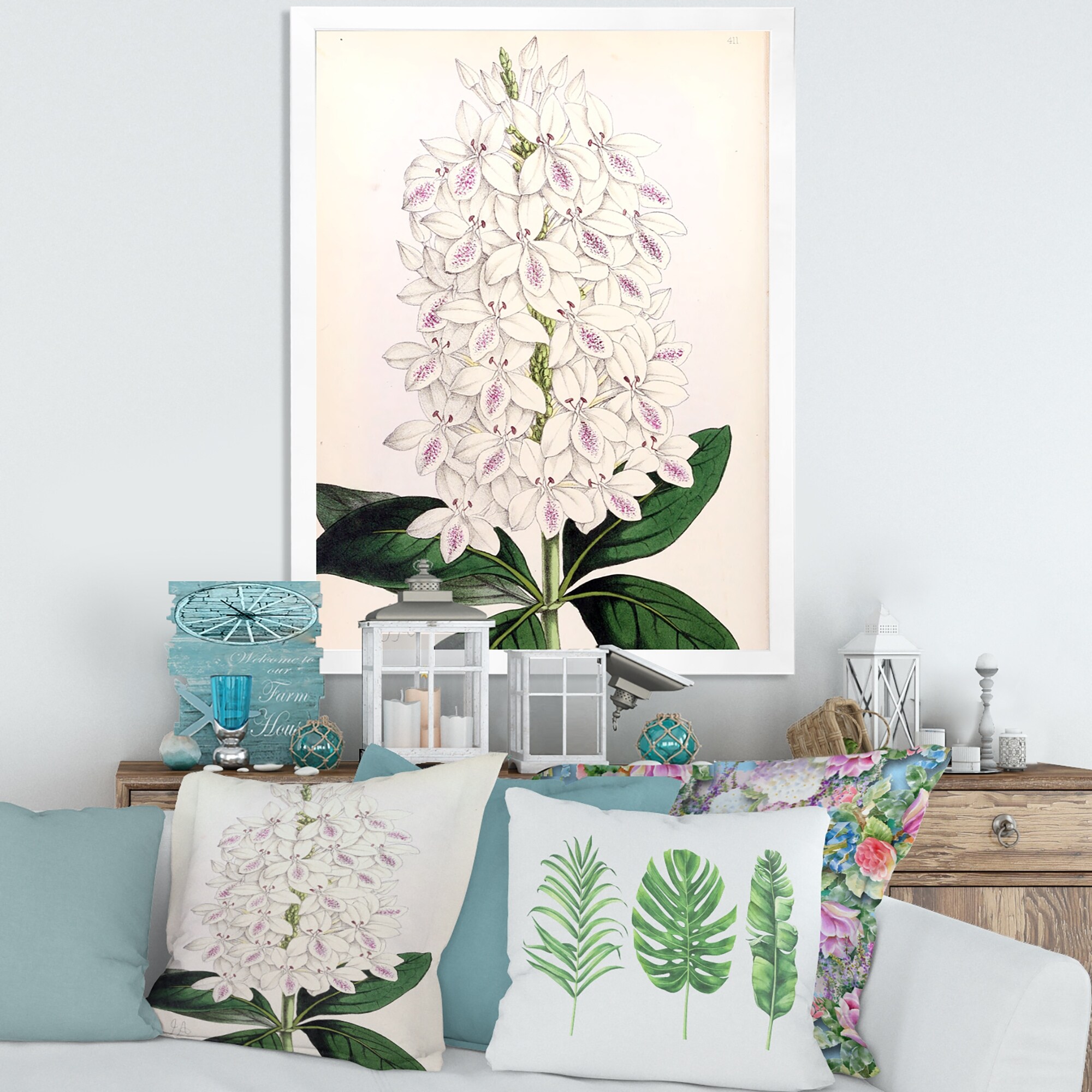 Designart "Vintage White Orchid III" Traditional Framed Art Print