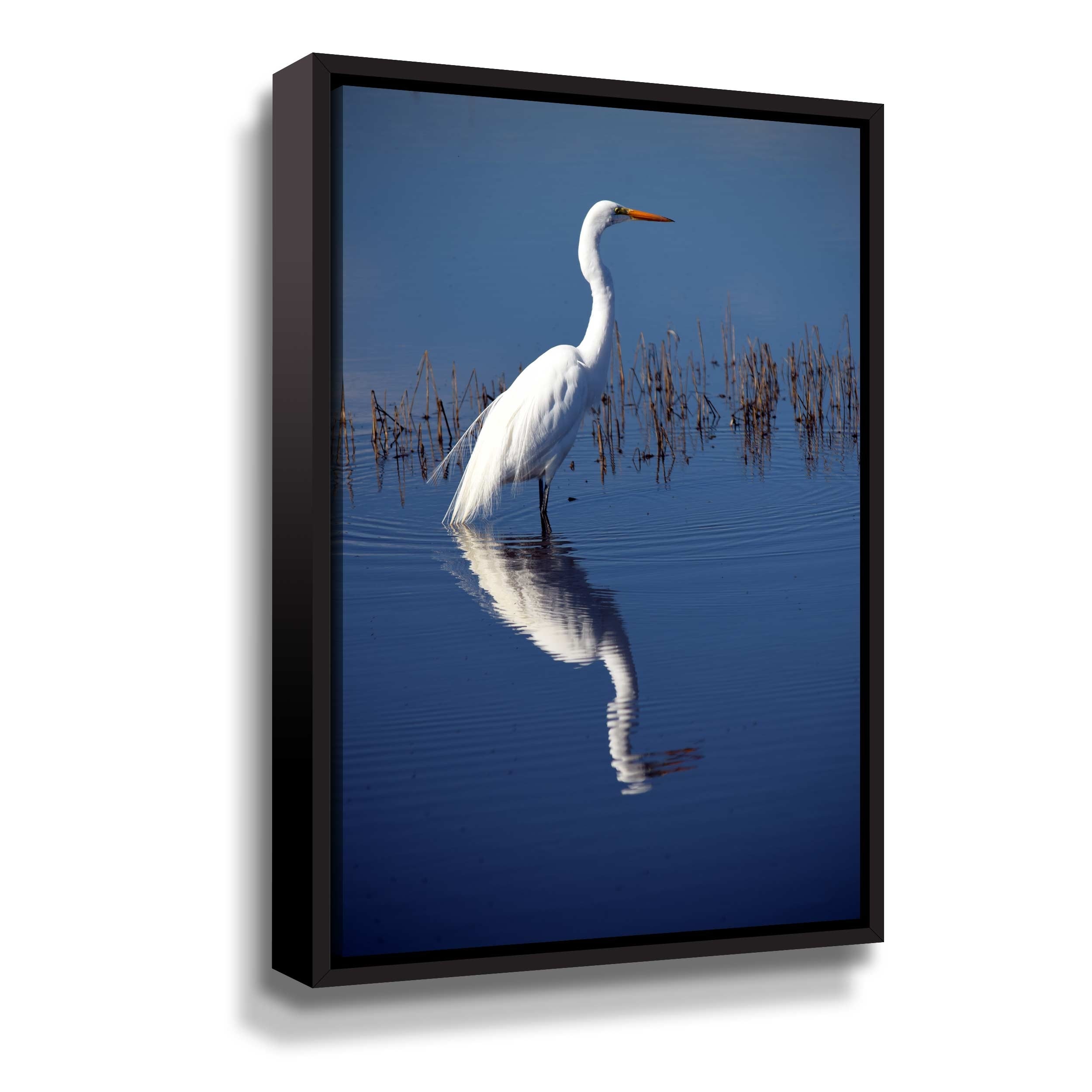 Great White Egret And Reflection by Frank Wilson Gallery Wrapped Floater-framed Canvas
