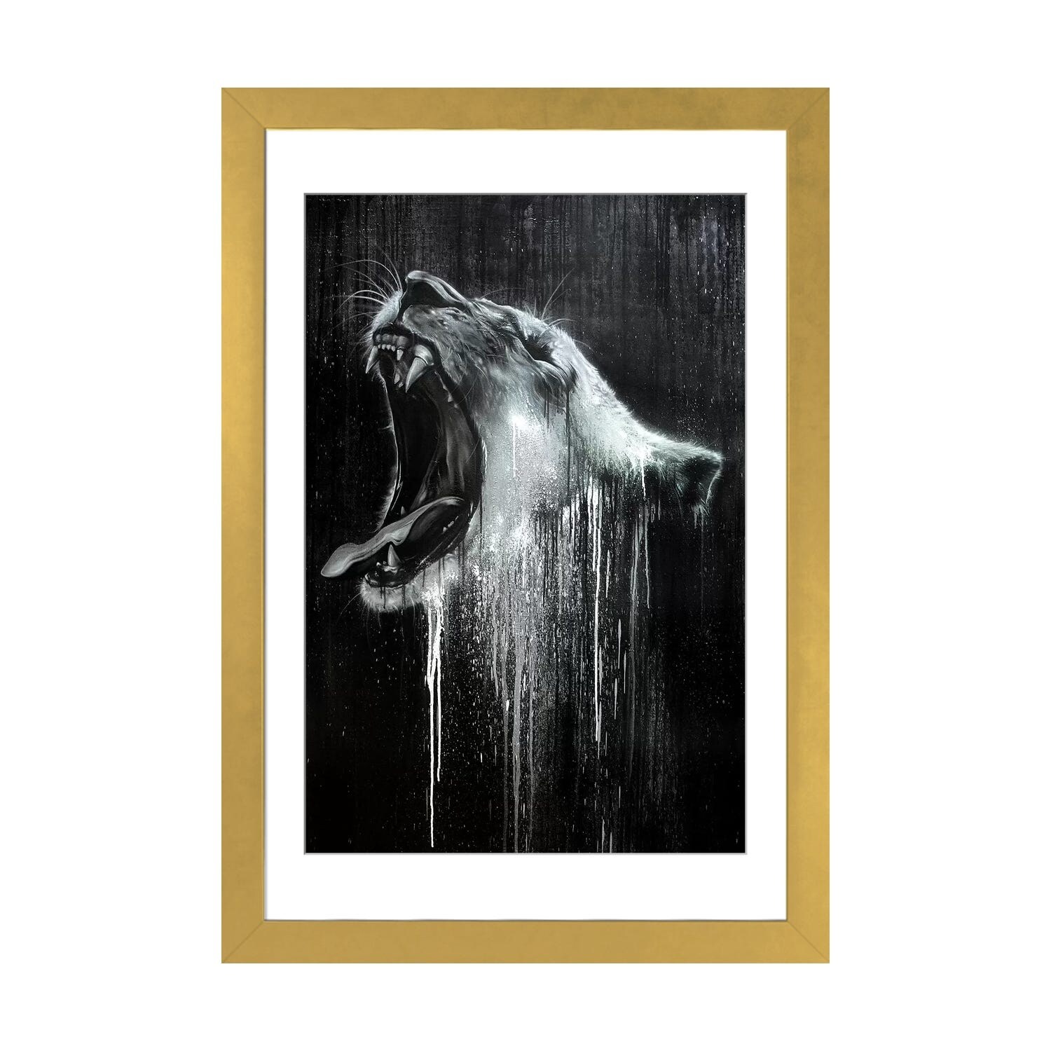 Designart "White Tiger with Open Jaws" Animal Framed Canvas Wall Art
