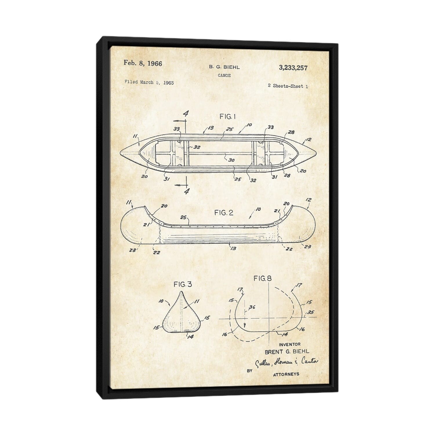 iCanvas "Canoe" by Patent77 Framed|White - 26x18