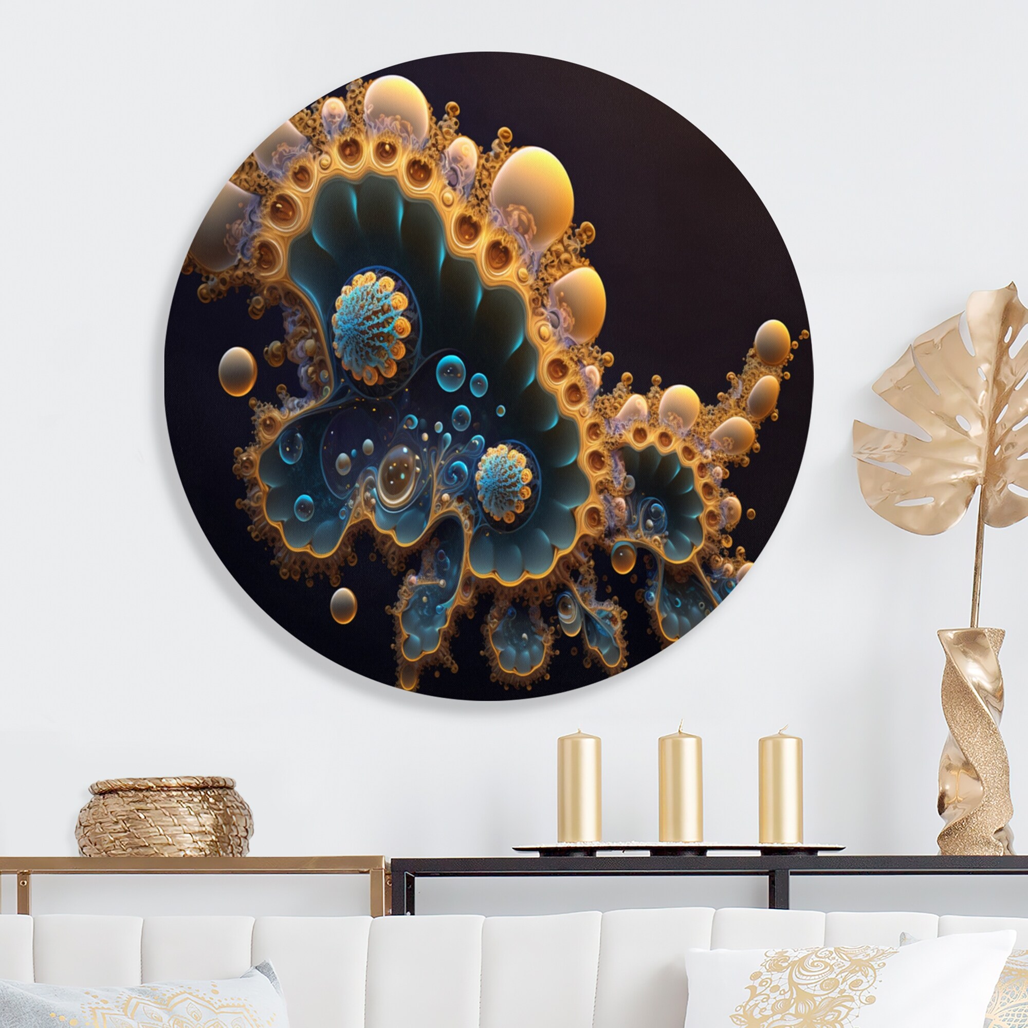 Designart 'Fractal Nucleus in White I' Modern Metal Round Wall Art