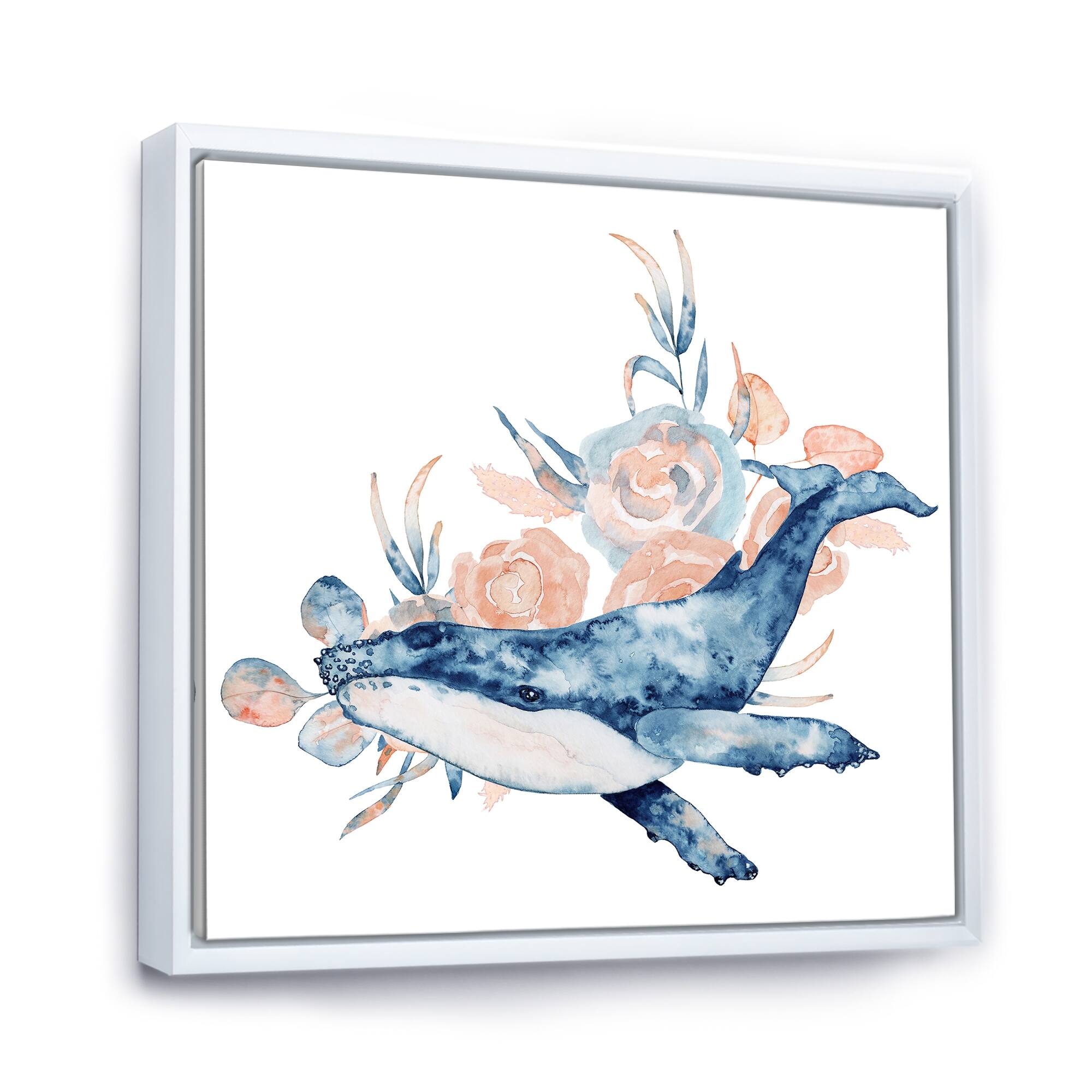 Designart "Blue Whale on White III" Nautical & Coastal Framed Canvas Wall Art Print