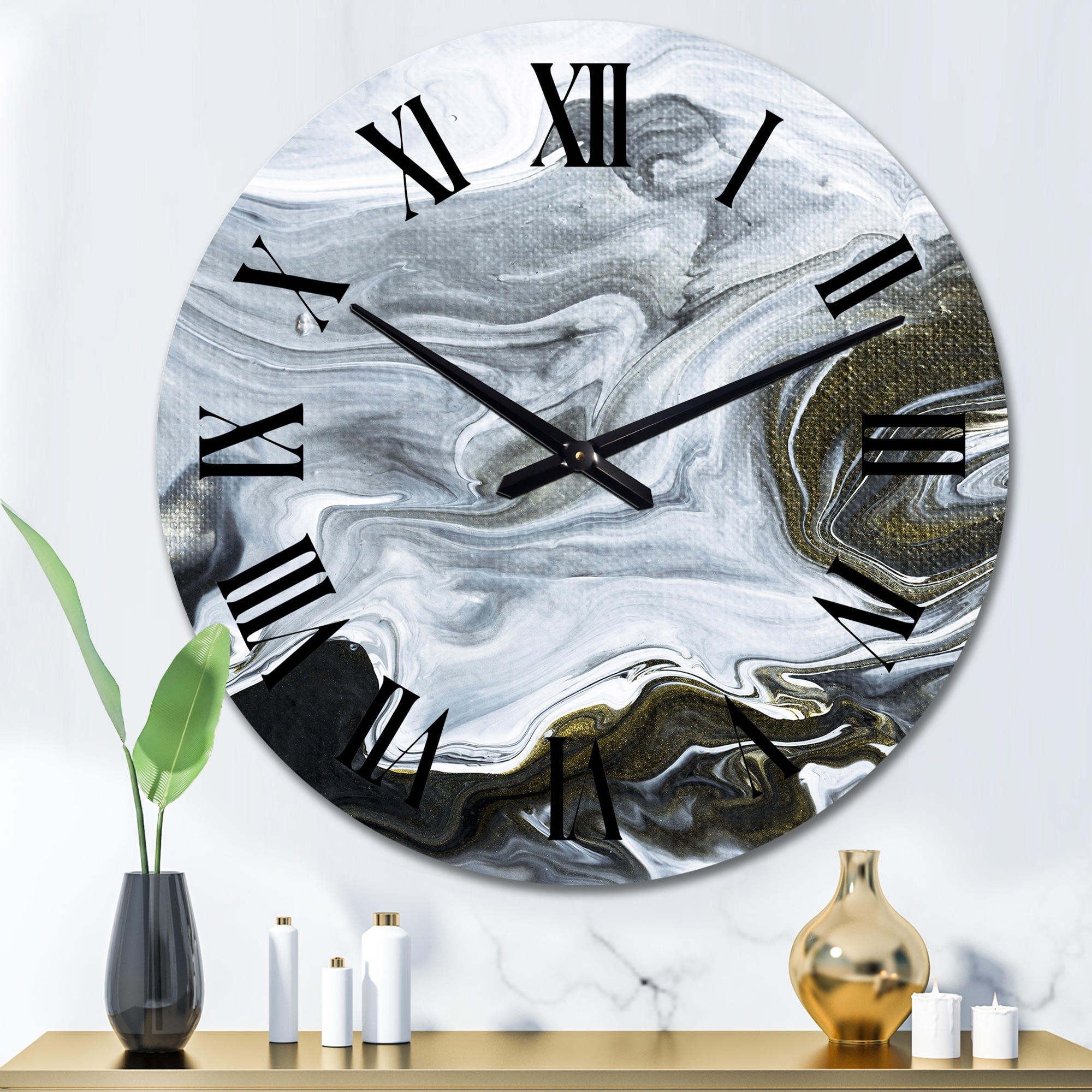 Designart 'Black And White Marble Abstract Liquid Art' Modern wall clock