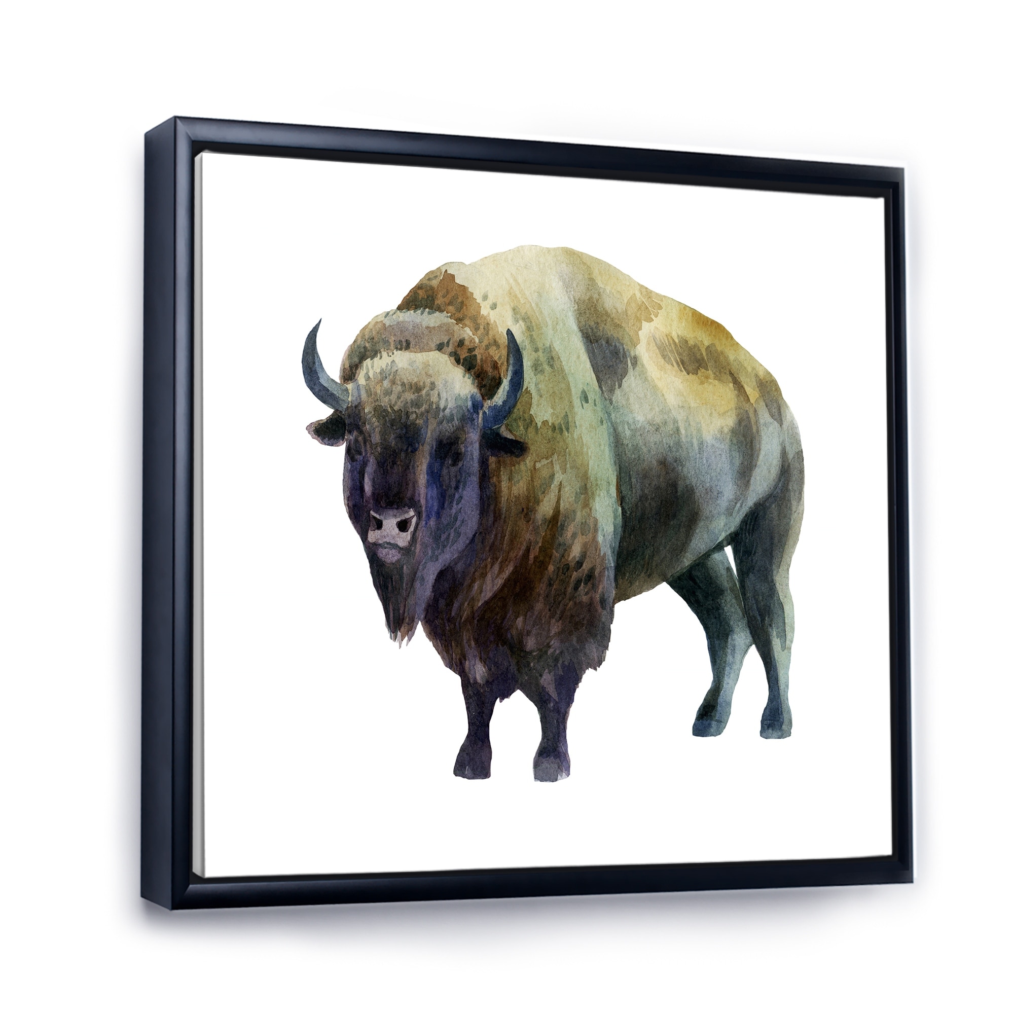 Designart "Bison On White" Traditional Framed Canvas Wall Art Print