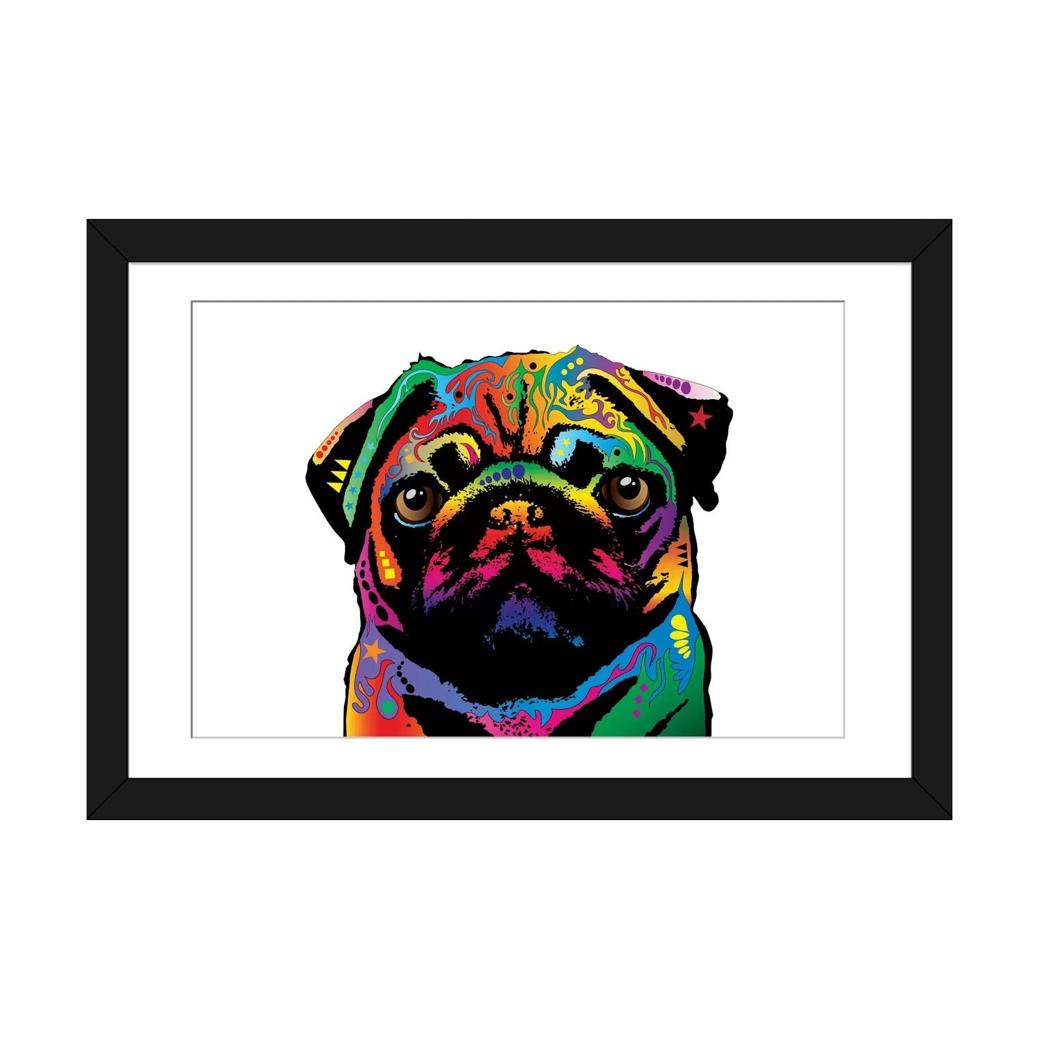 iCanvas "Rainbow Pug on White" by Michael Tompsett