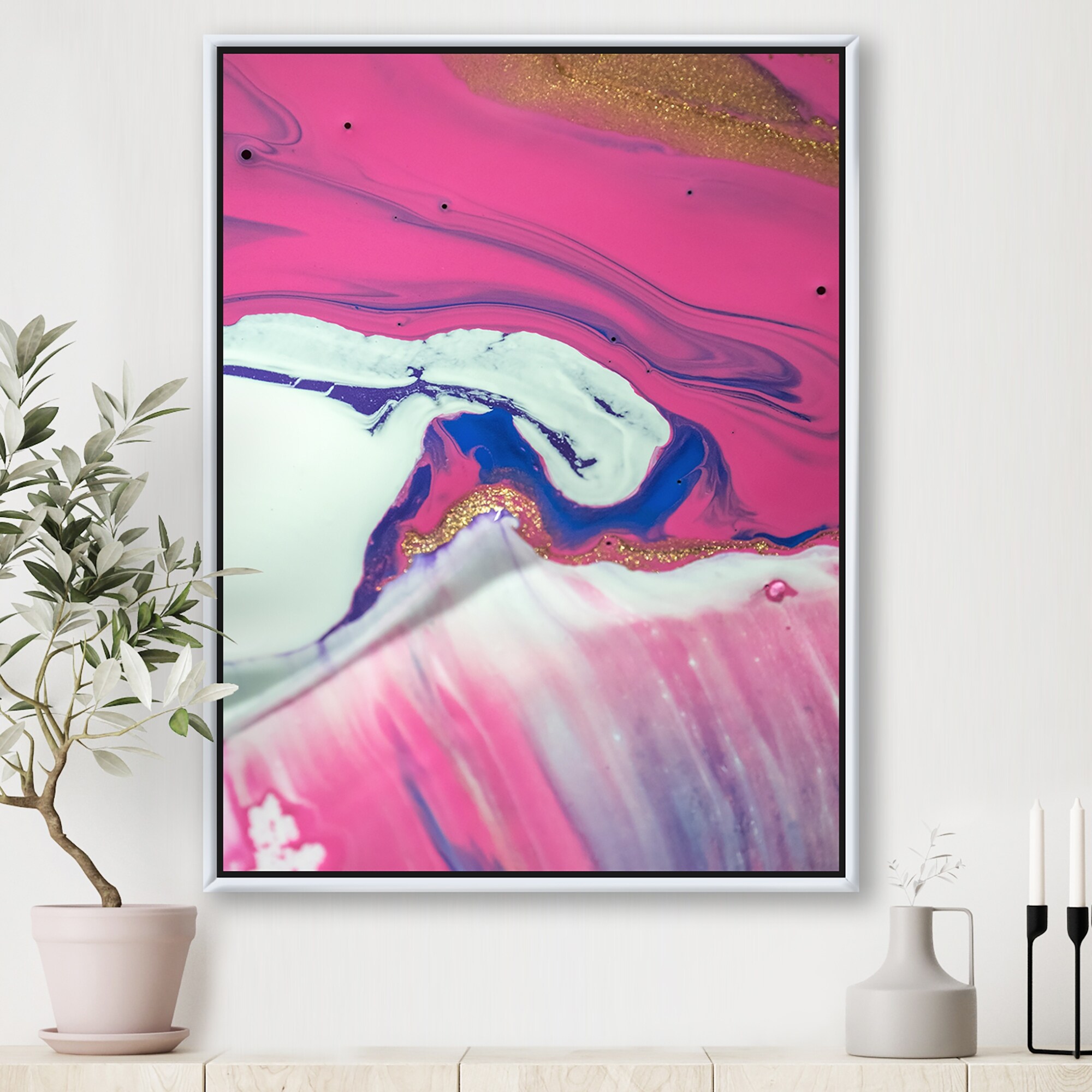 Designart "Fuchia Marble Landscape With A Touch of White" Modern Framed Canvas Wall Art Print