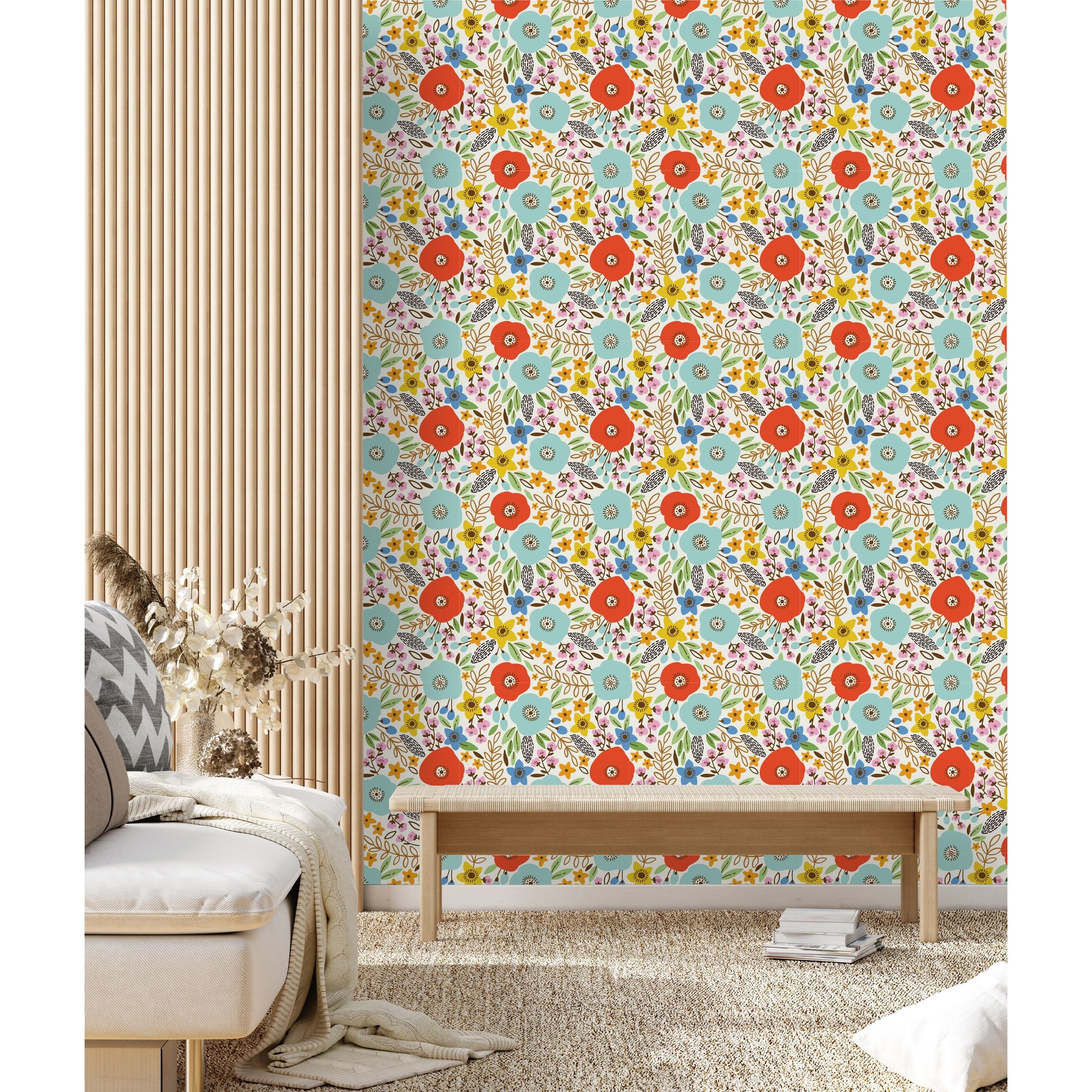 Colorful Poppies on White Background Wallpaper