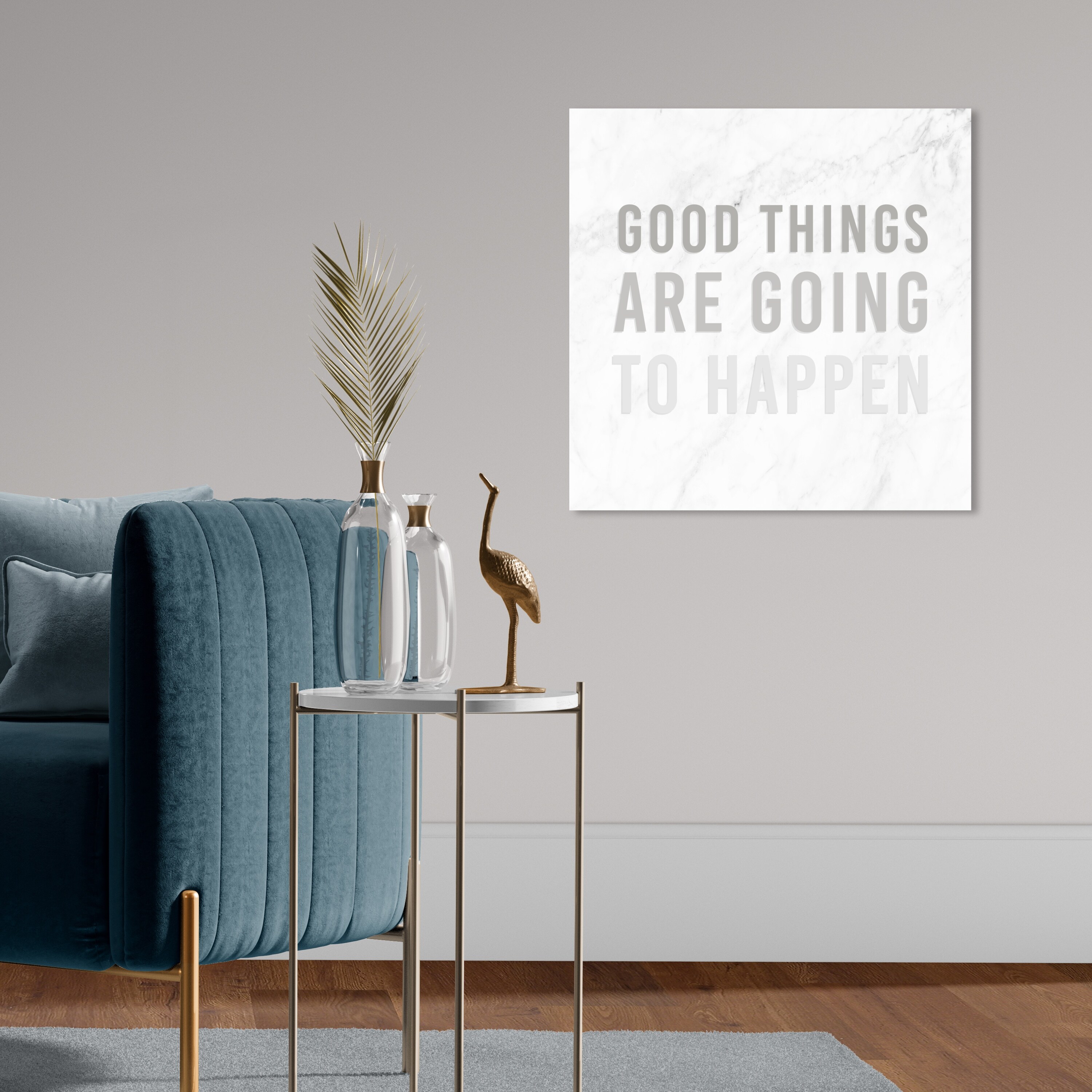 Oliver Gal 'Good Things Monochrome Marble' Typography and Quotes Wall Art Canvas Print Inspirational Quotes - White, Gray