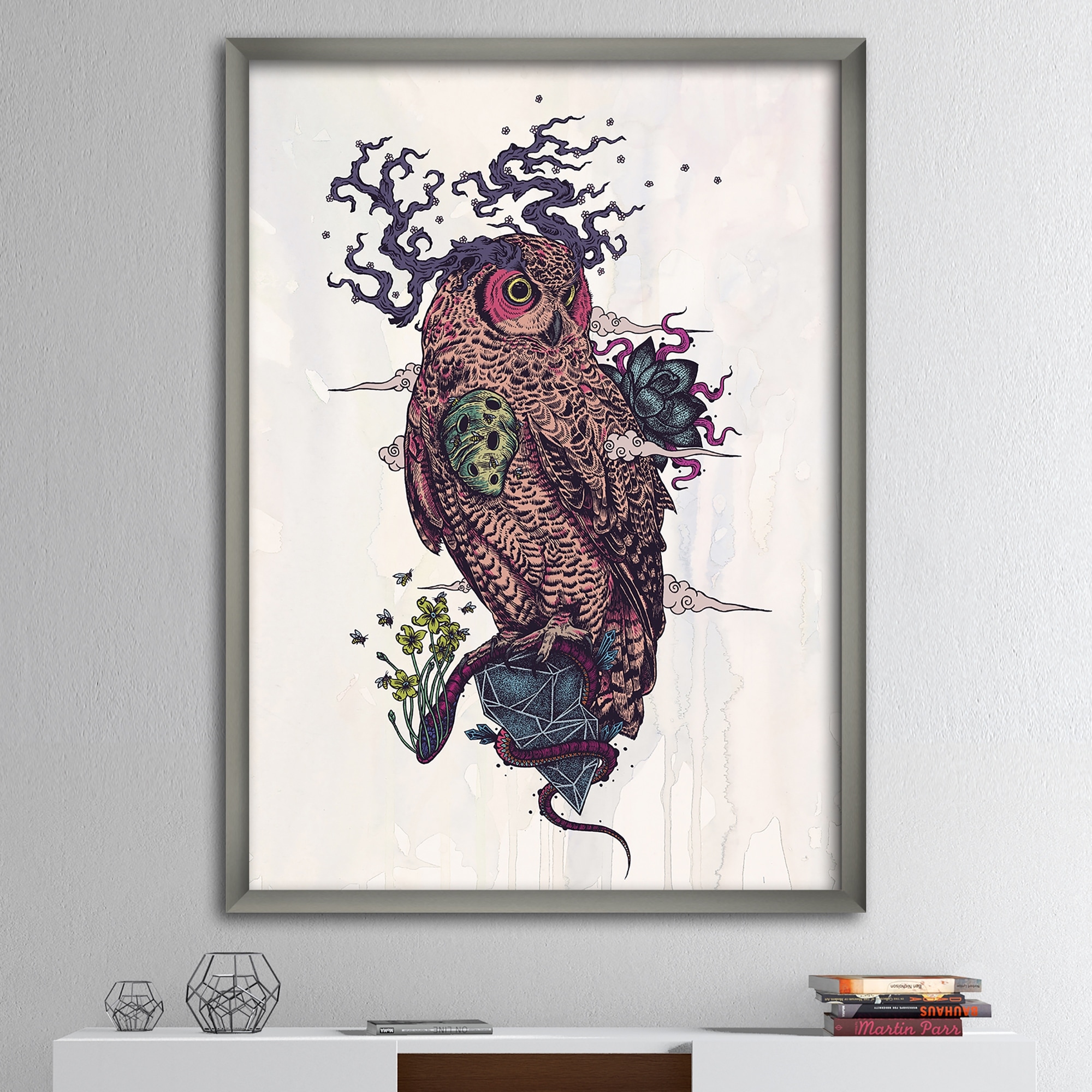 Designart "Diamond Owl Wisdom" Modern & Contemporary Framed Art Print
