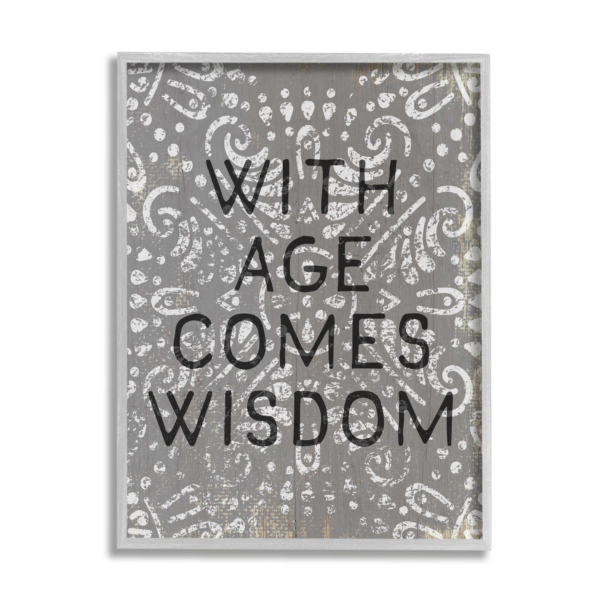 Stupell With Age Comes Wisdom Phrase Grey Boho Pattern Framed Wall Art