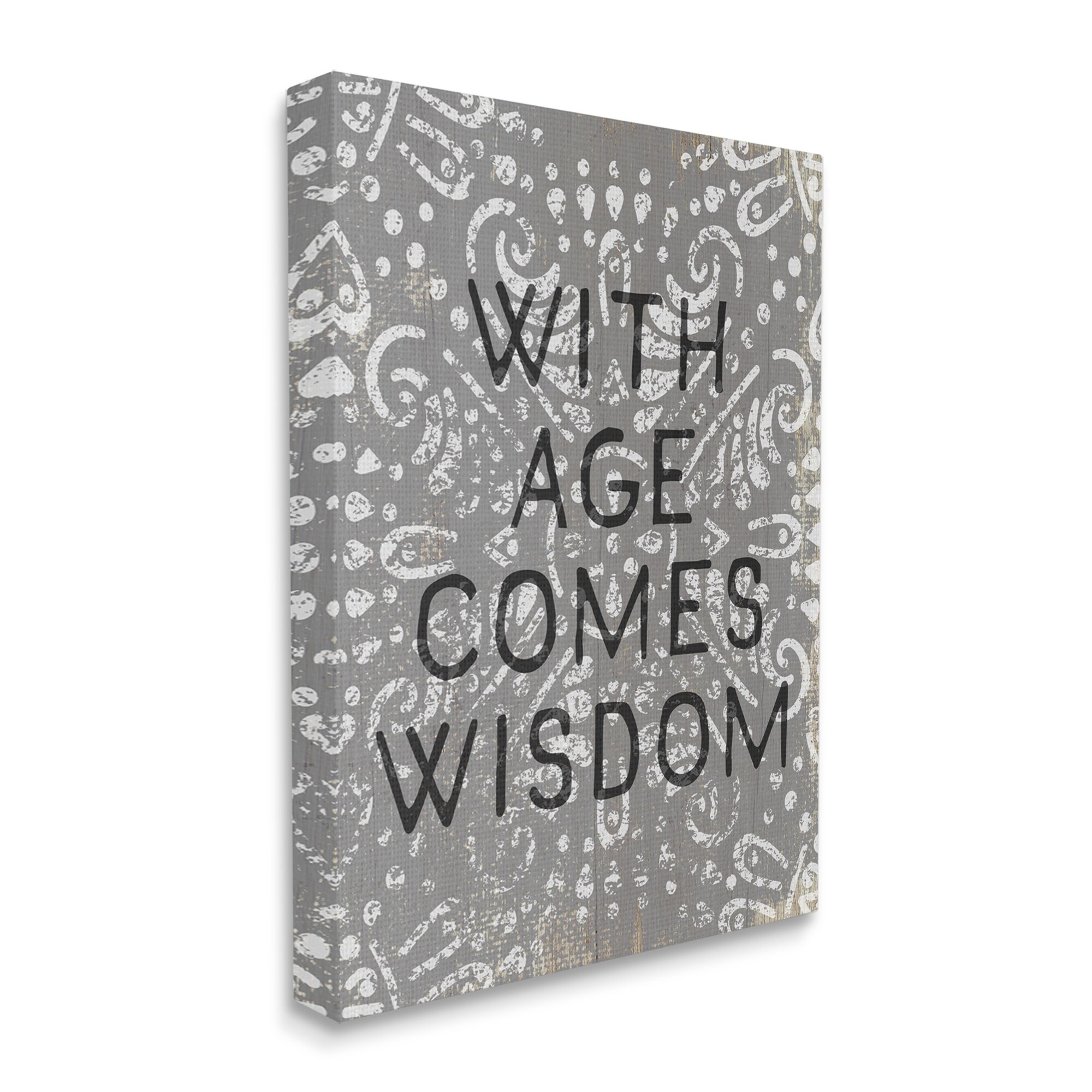 Stupell With Age Comes Wisdom Phrase Grey Boho Pattern Canvas Wall Art