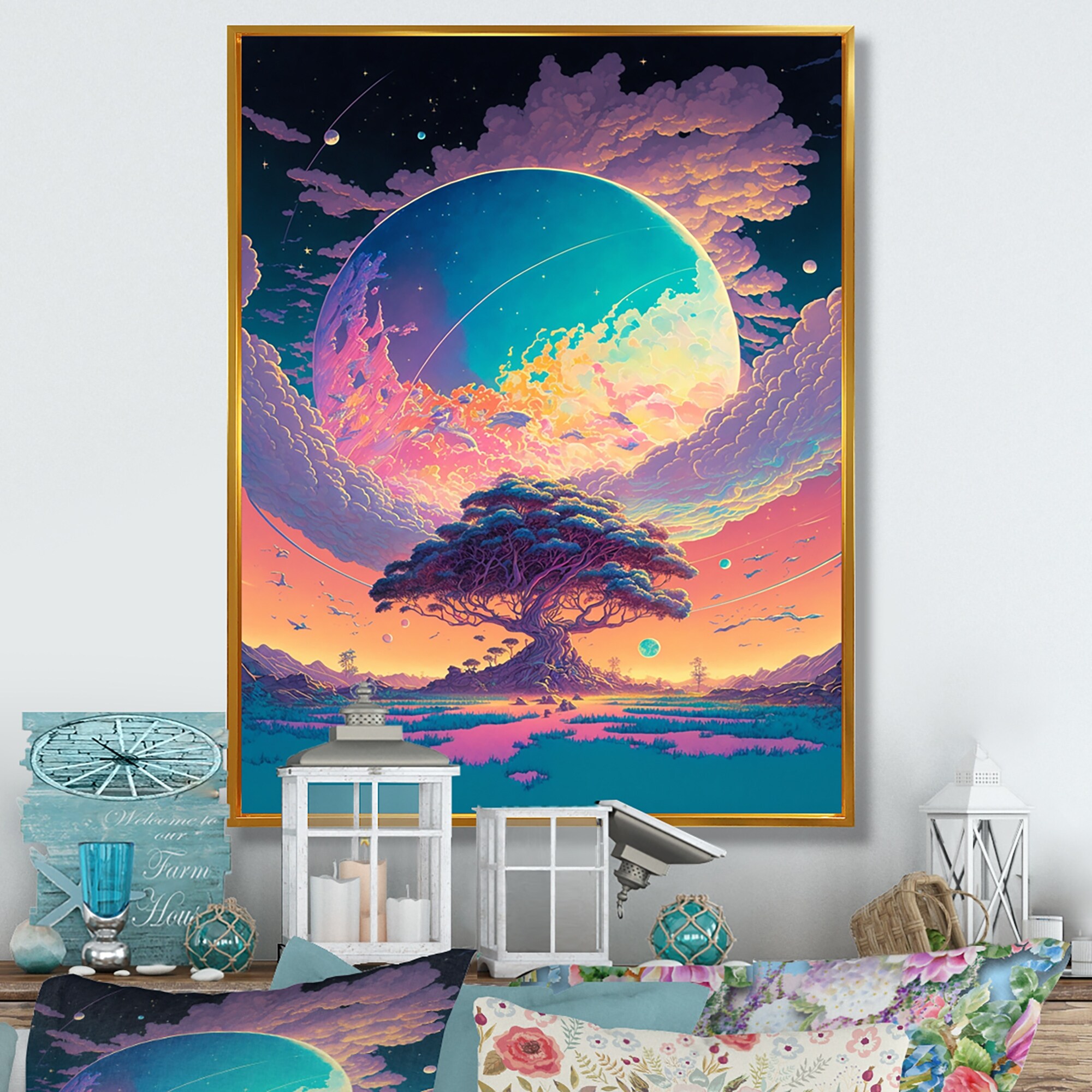 Designart "Majestic Tree of Wisdom in Pastel" Landscape Forest Framed Canvas Wall Art Print