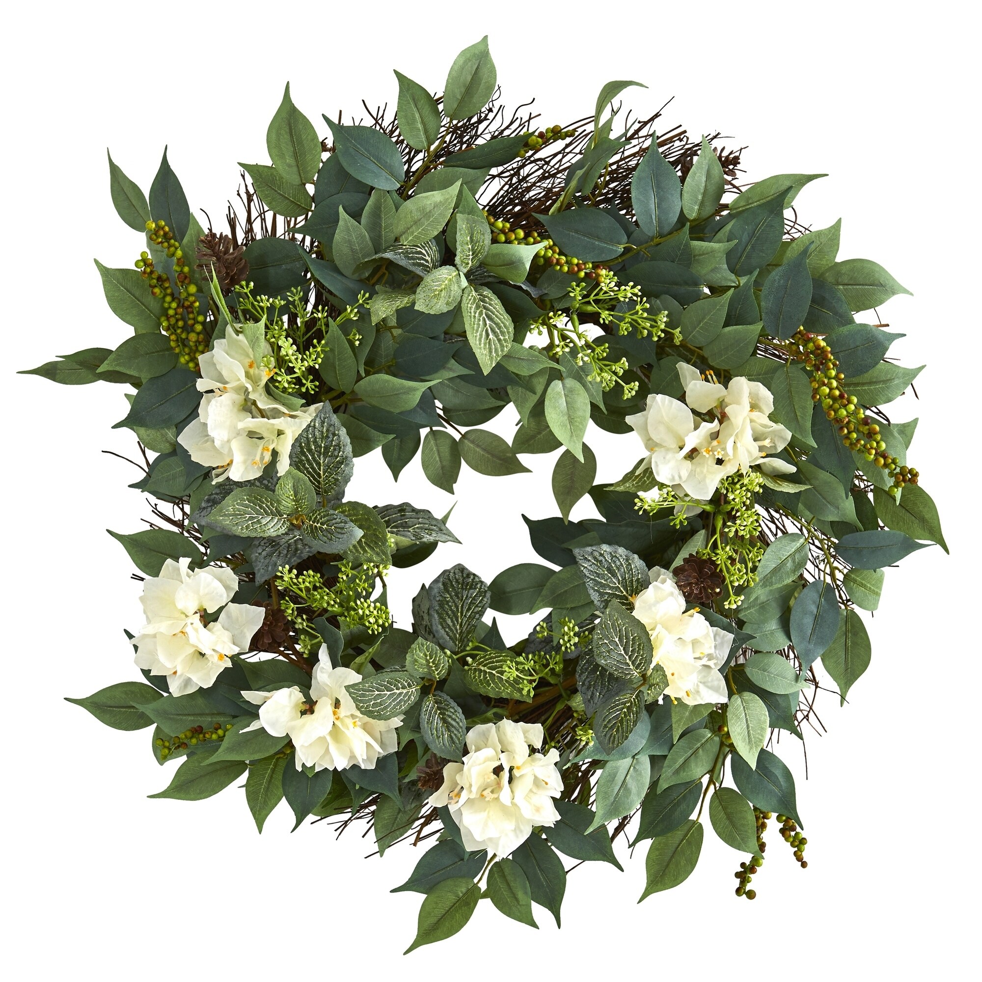 Hydrangea and Berries Artificial Fall Harvest Wreath, 24-Inch