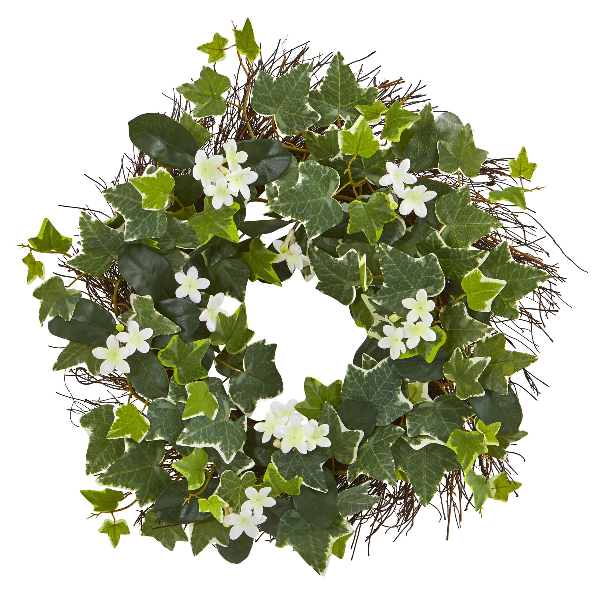20" Variegated Sage Ivy and Stephanotis Artificial Wreath