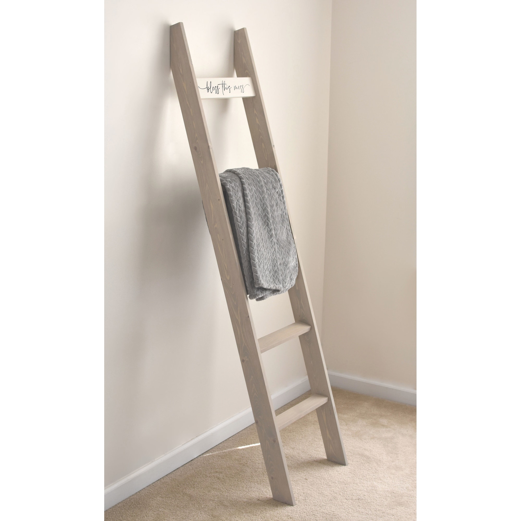 6ft Country Chic Blanket Ladder with Farmhouse Sign 'Bless this Mess' - Light Gray - 72 x 17 x 3