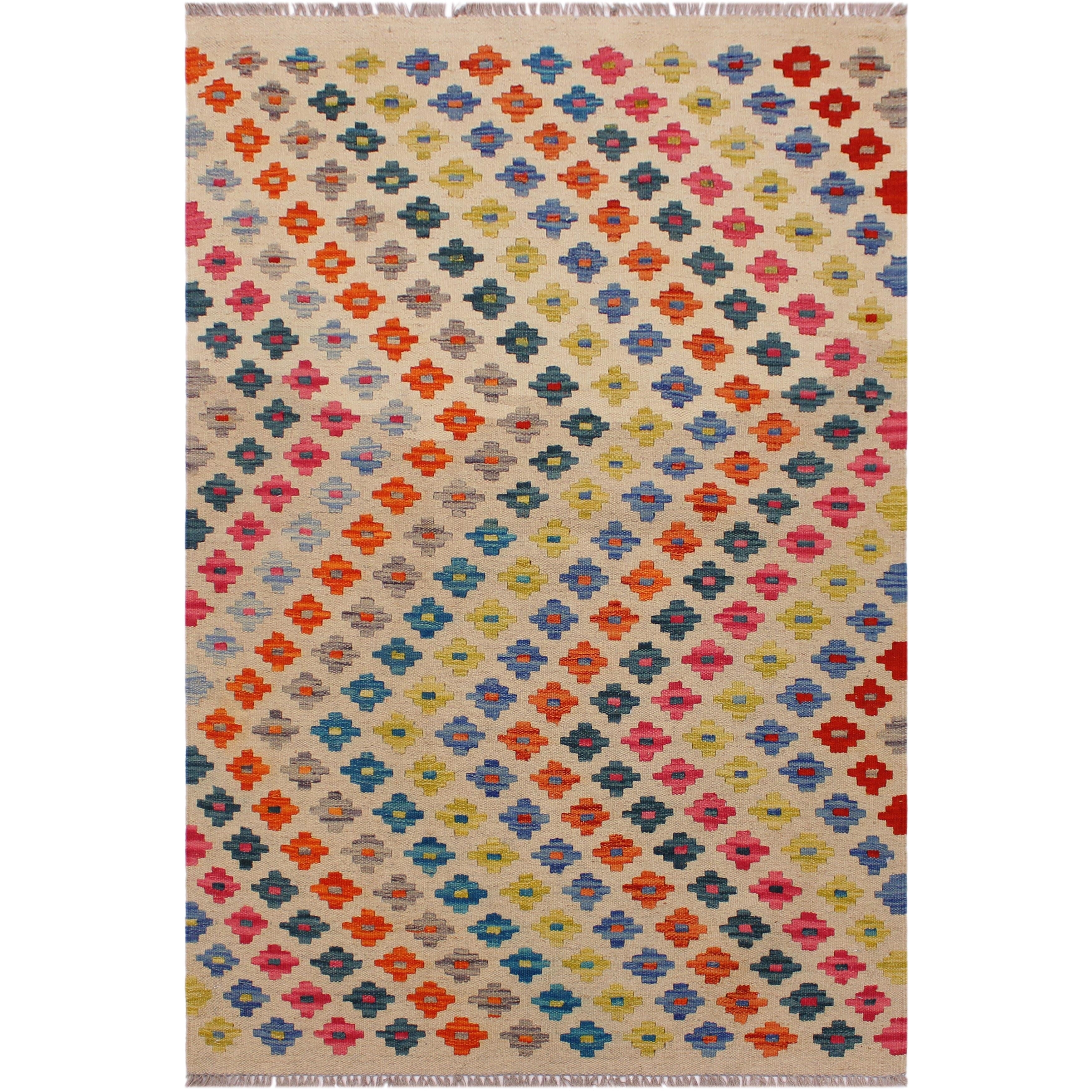 Kilim Basilia Ivory/Pink Hand-Woven Wool Rug -3'4 x 4'11 - 3 ft. 4 in. X 4 ft. 11 in. - 3 ft. 4 in. X 4 ft. 11 in.