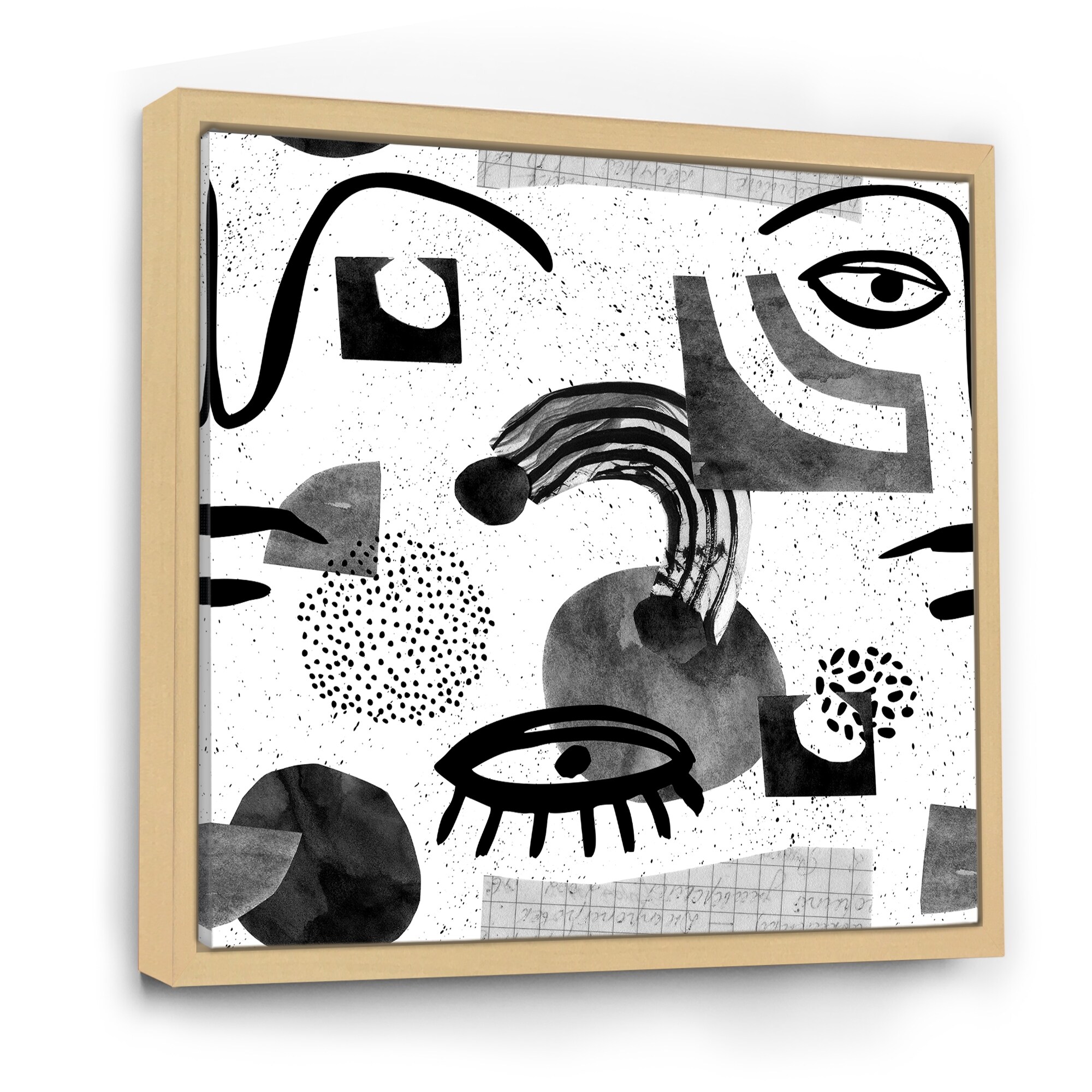 Designart "Collage of Eyes & Doodles in Contemporary Style II" Modern Framed Canvas Wall Art Print