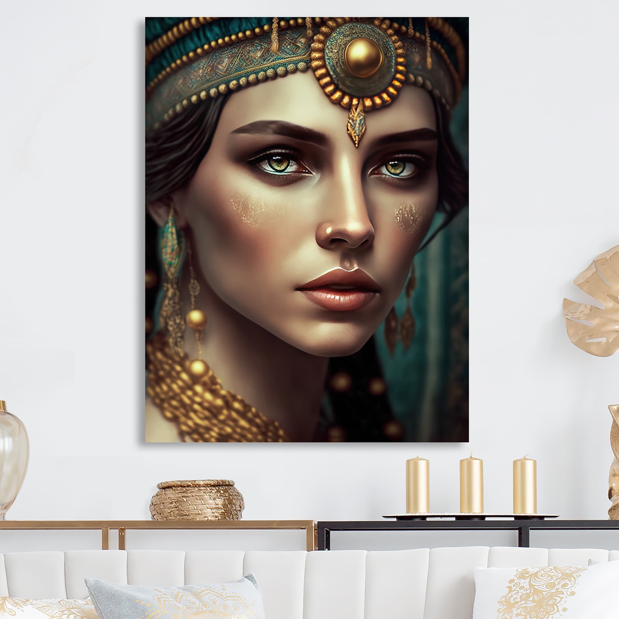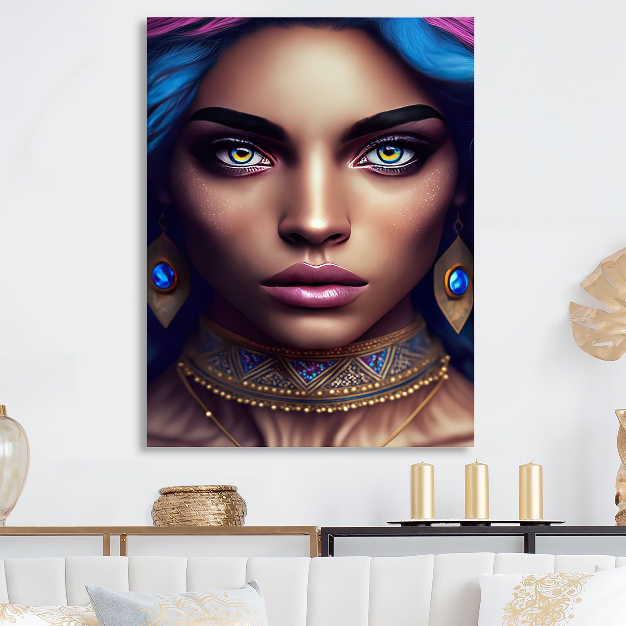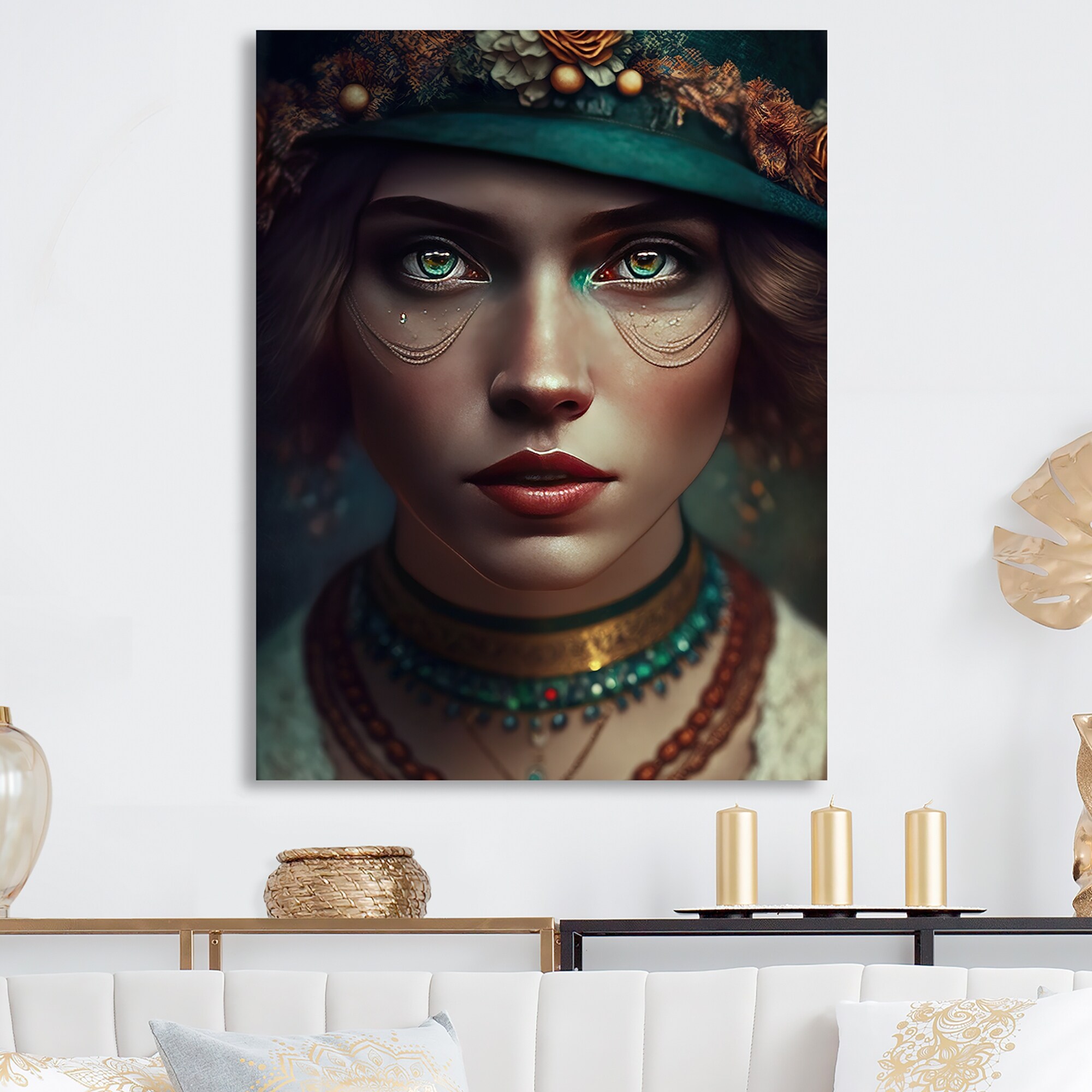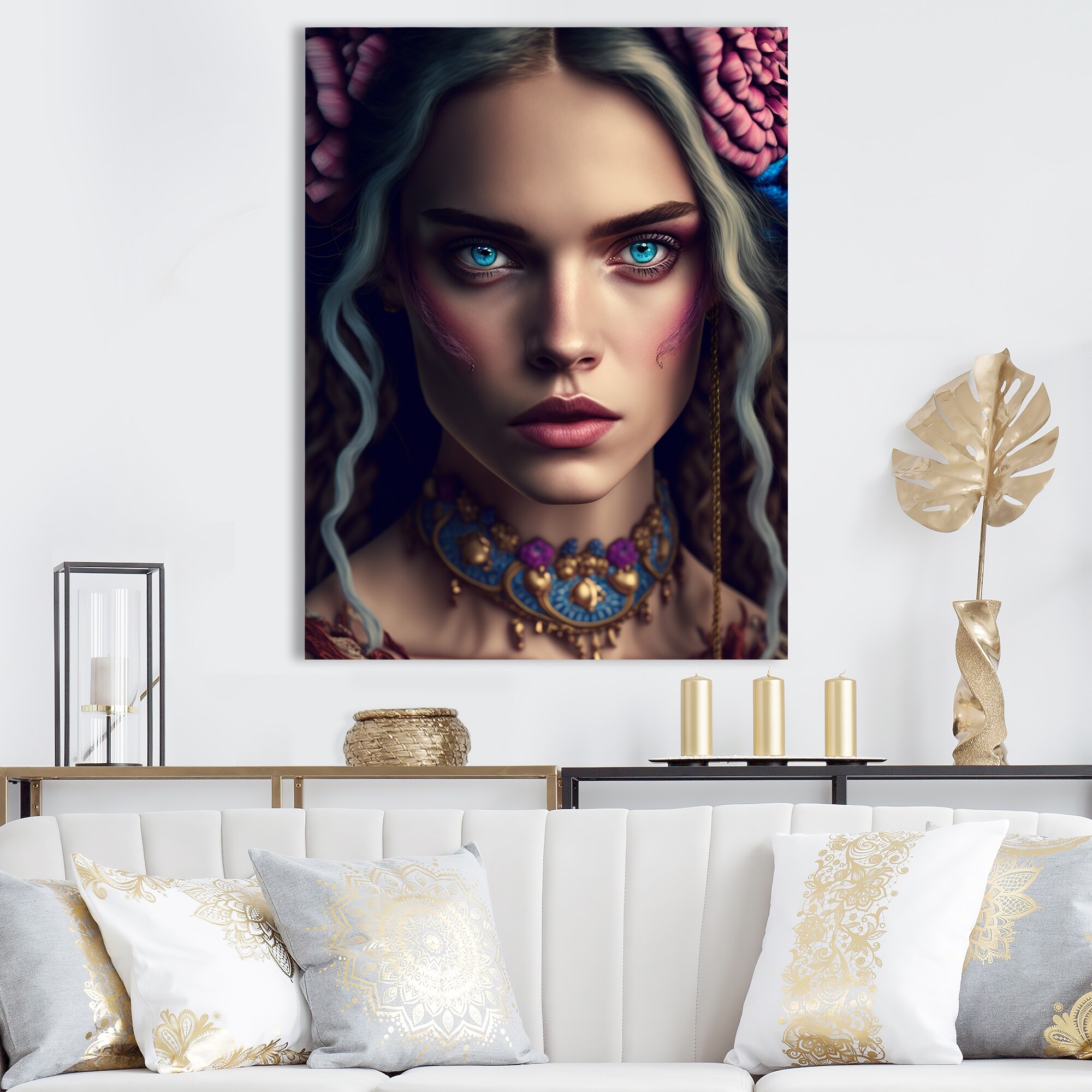 Designart "Bohemian Woman With Blue Eyes VII" Boho Woman Canvas Art Print