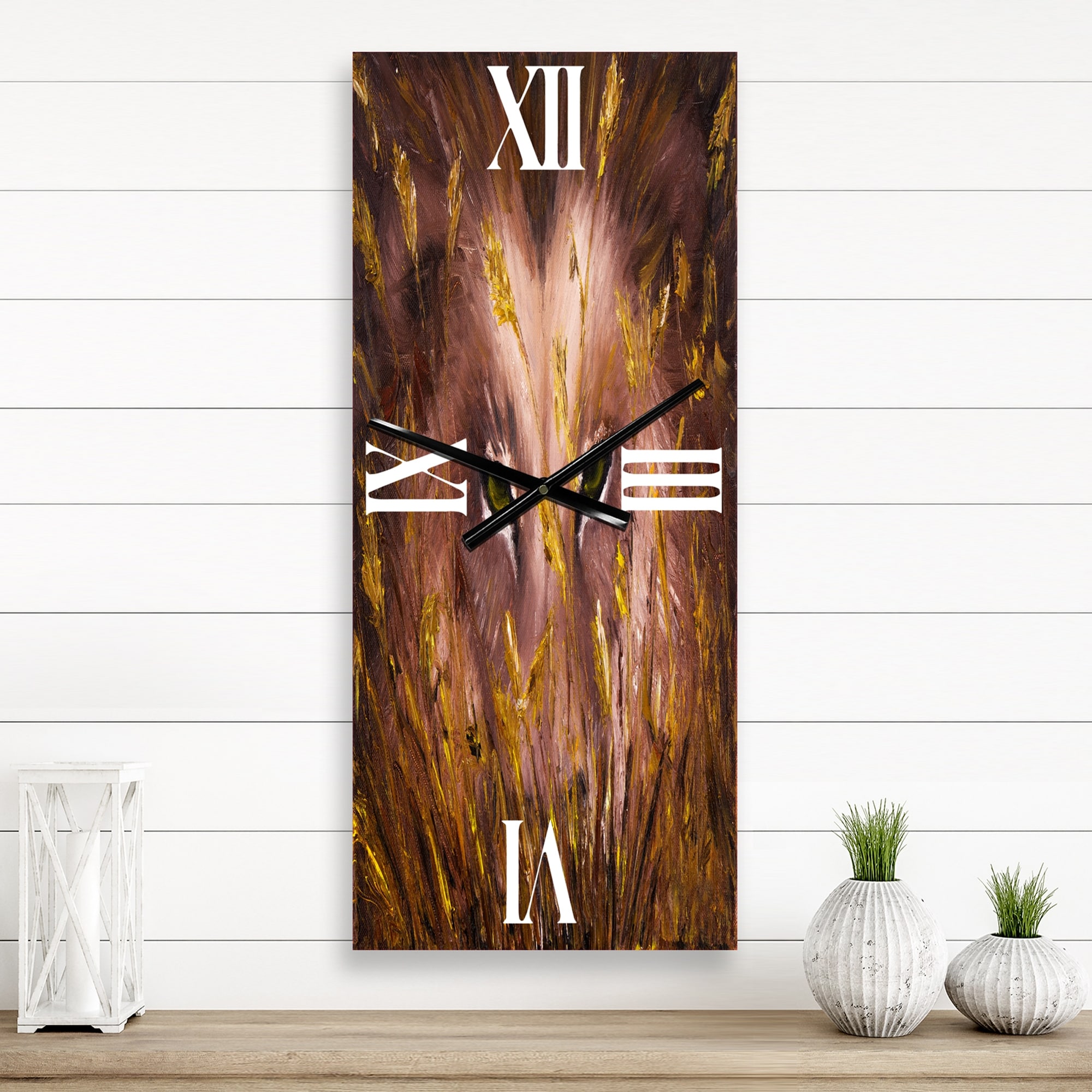 Designart 'Wolf Eyes in the Grass' Farmhouse Wall Clock Decor