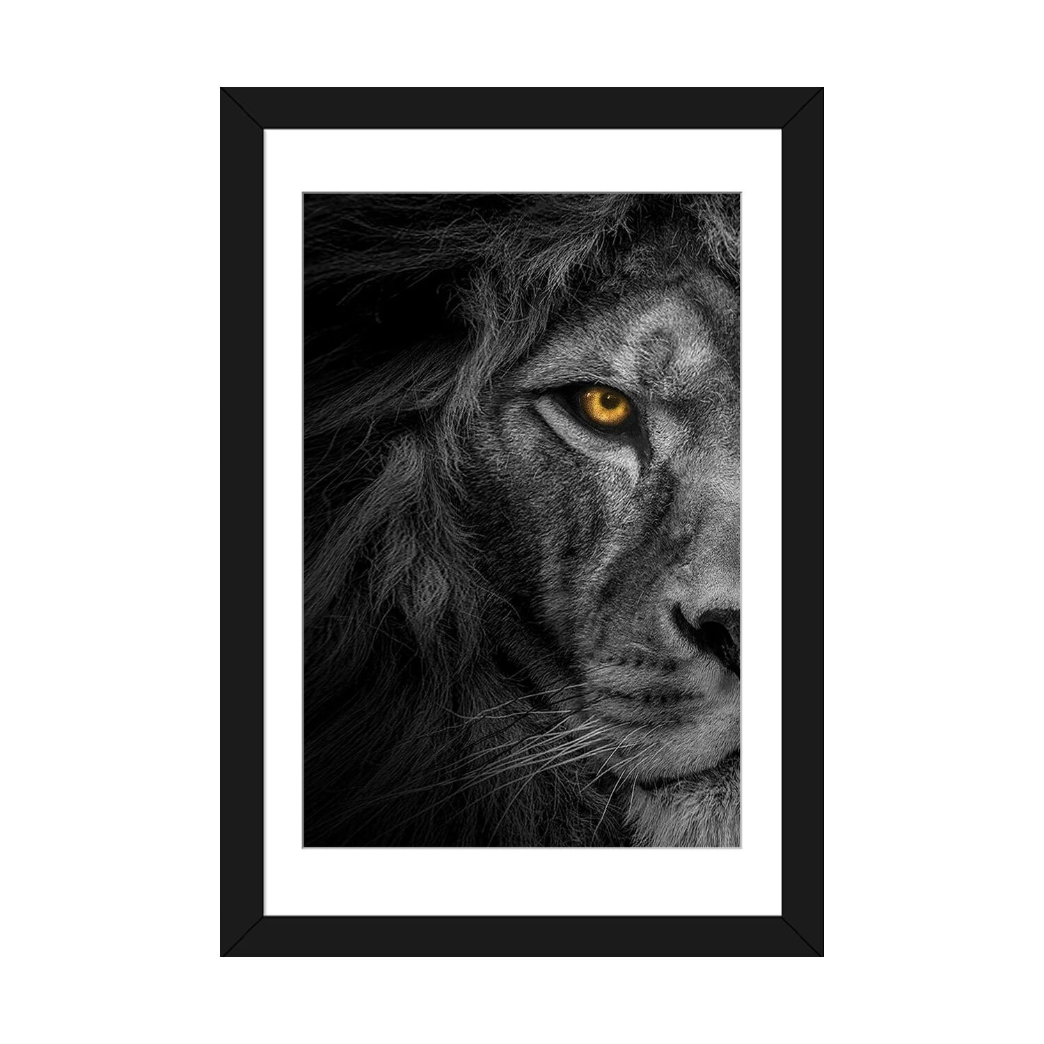 iCanvas "Lion Black And White With Color Eyes Half Face" by Adrian Vieriu PFA