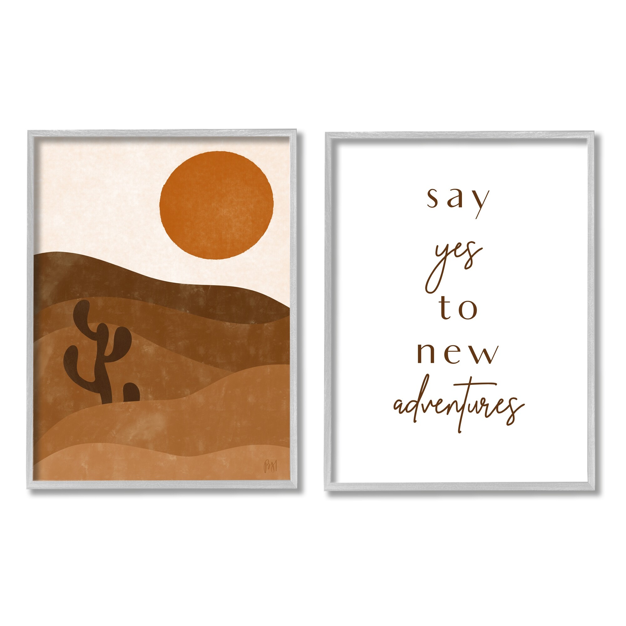 Stupell Say Yes New Adventures Phrase Desert Sun Cactus 2pc Multi Piece Framed Wall Art Set